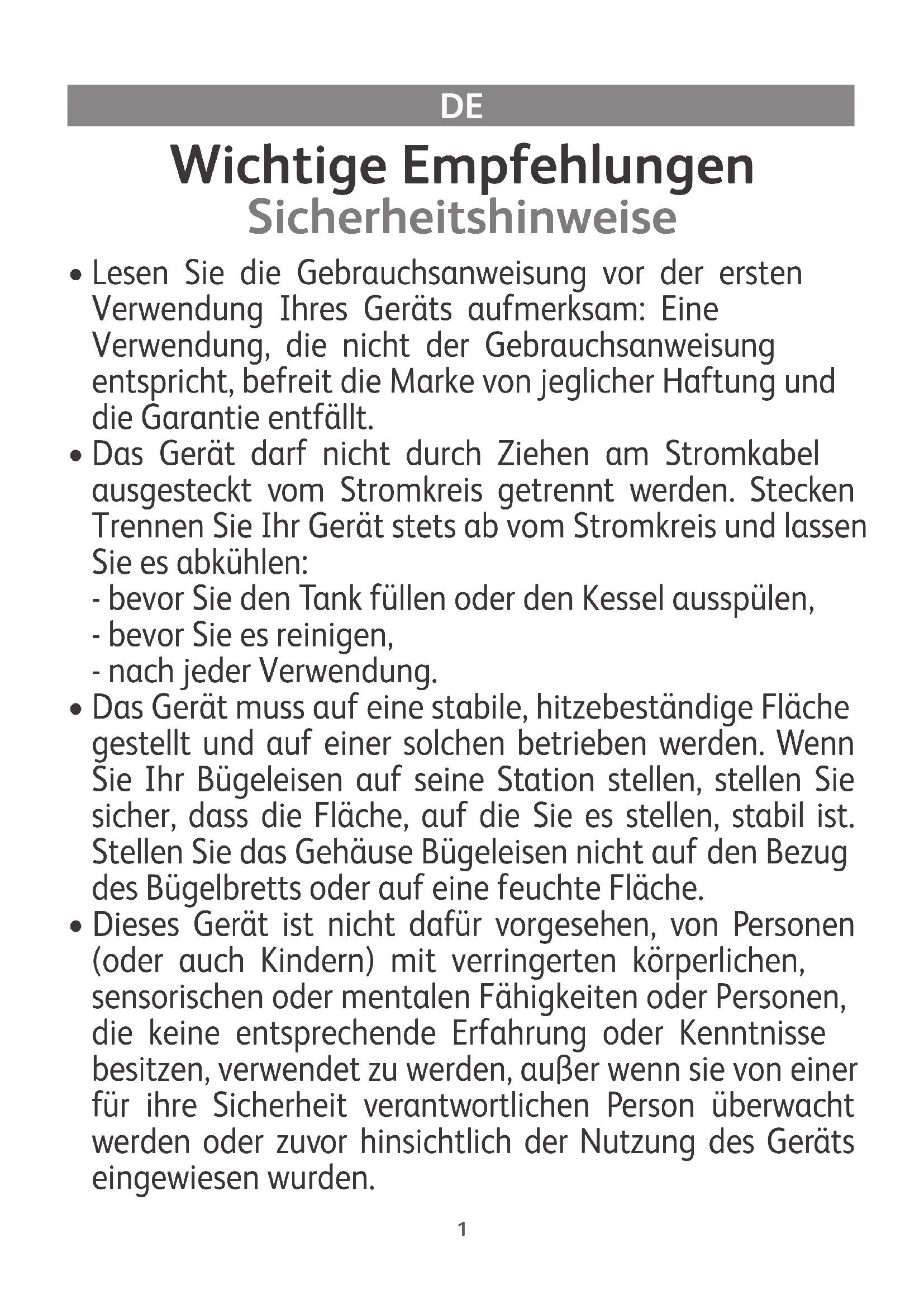 Wichtige Empfehlungen Sicherheitshinweise