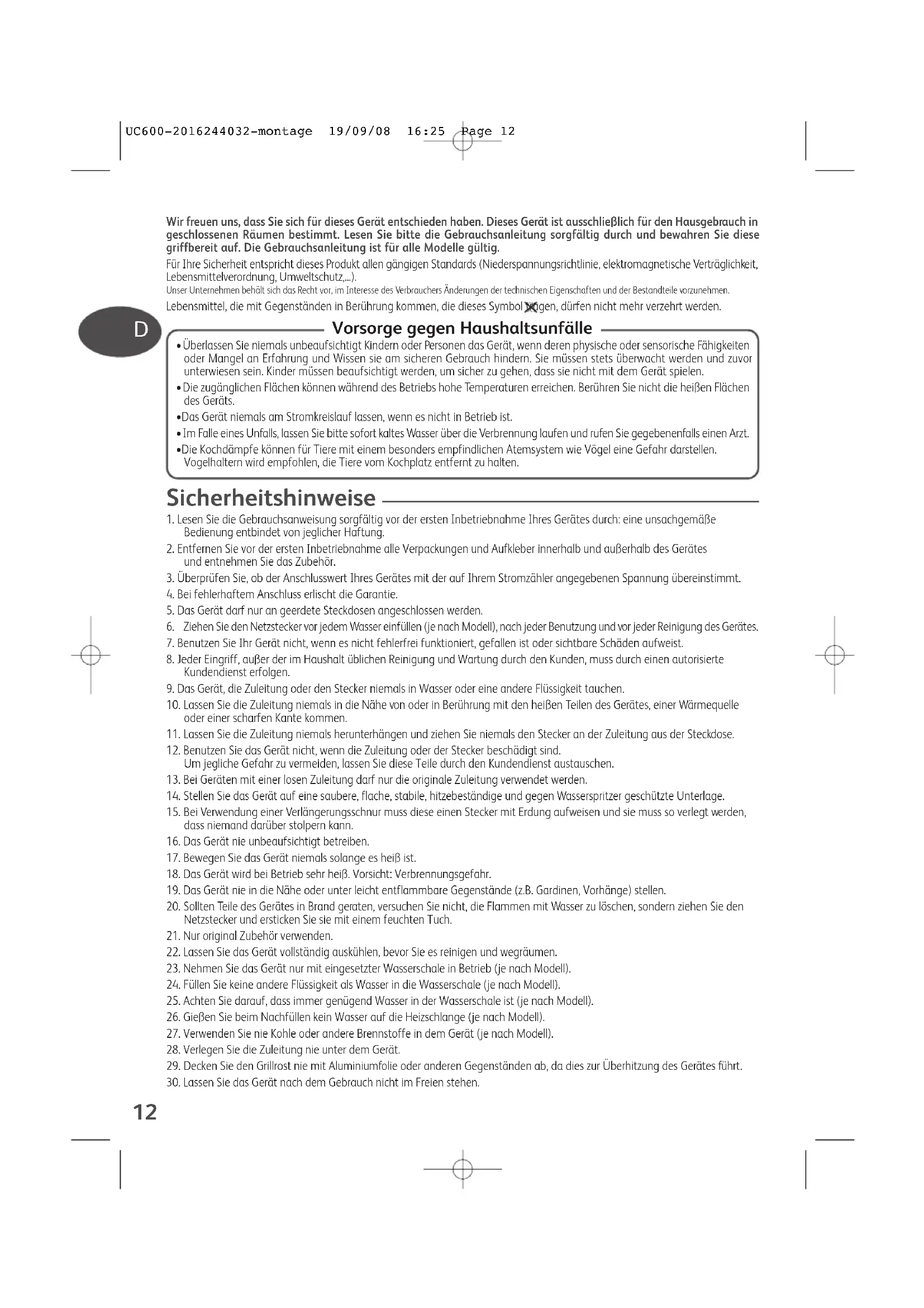 UC600-2016244032-montage 19/09/08 16:25 Page 1213 Montage Vor der ersten Inbetriebnahme