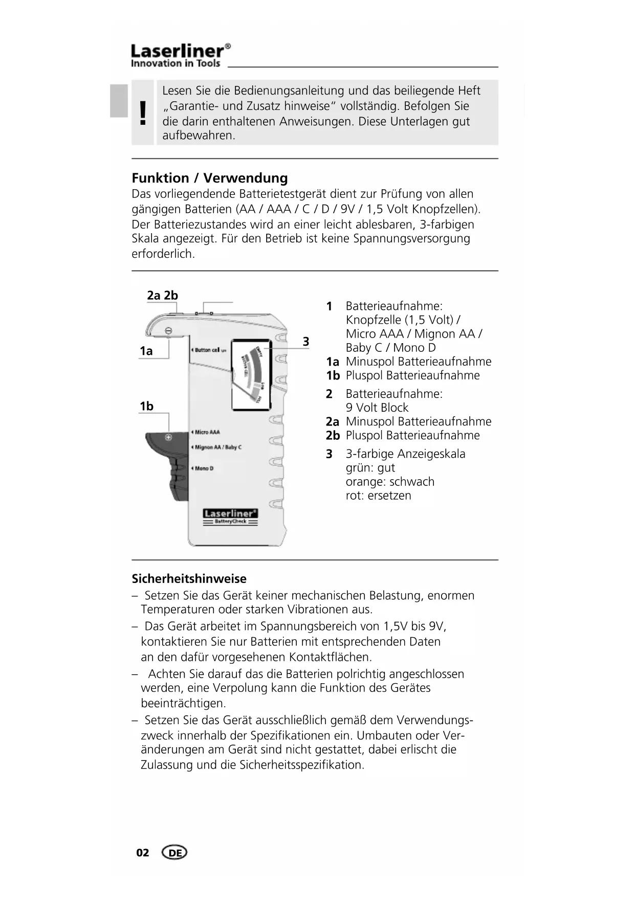 BEDIENUNGSANLEITUNG BatteryCheck Laserliner