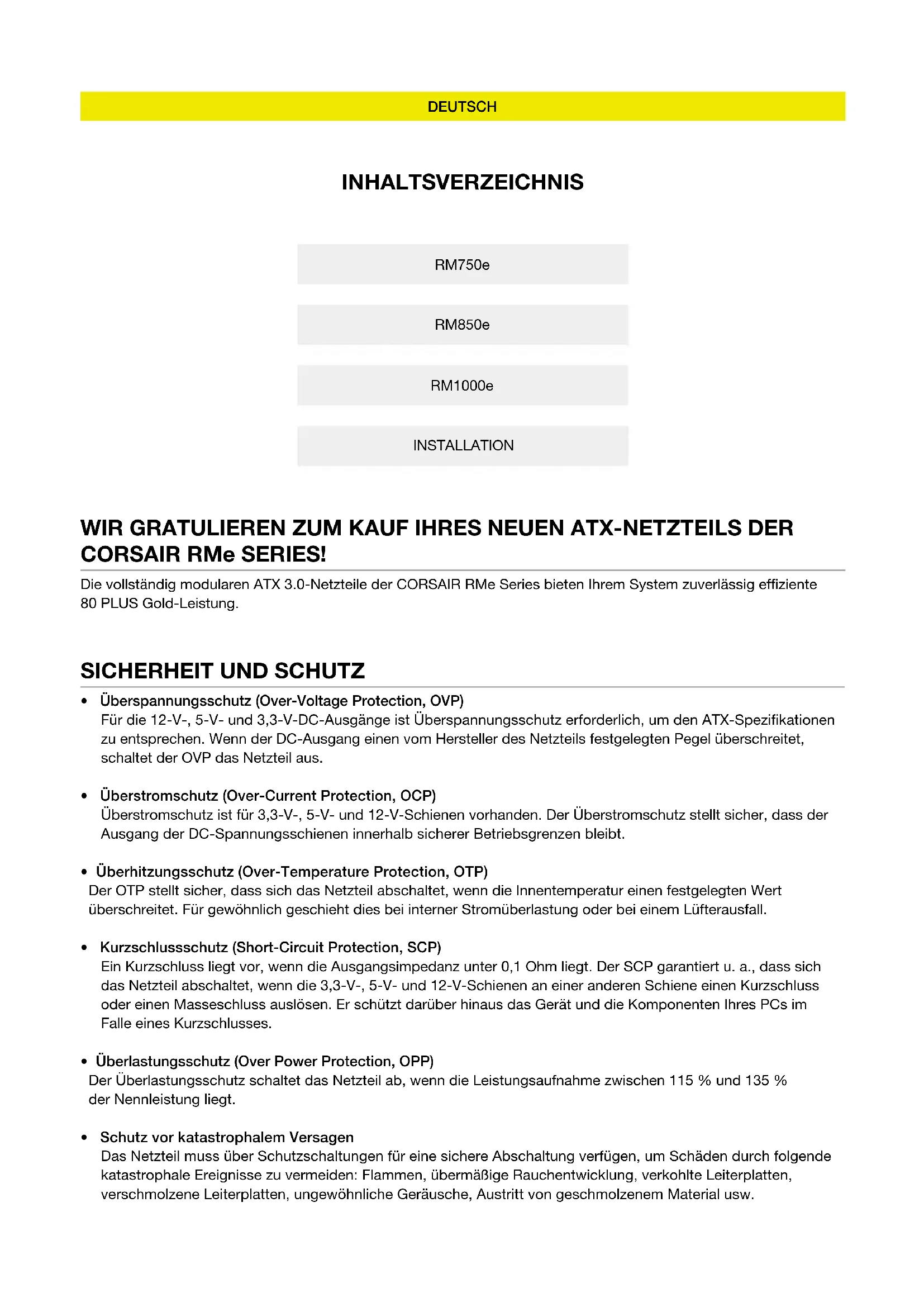 RM1000e - PC-Netzteil CORSAIR - Kostenlose Bedienungsanleitung