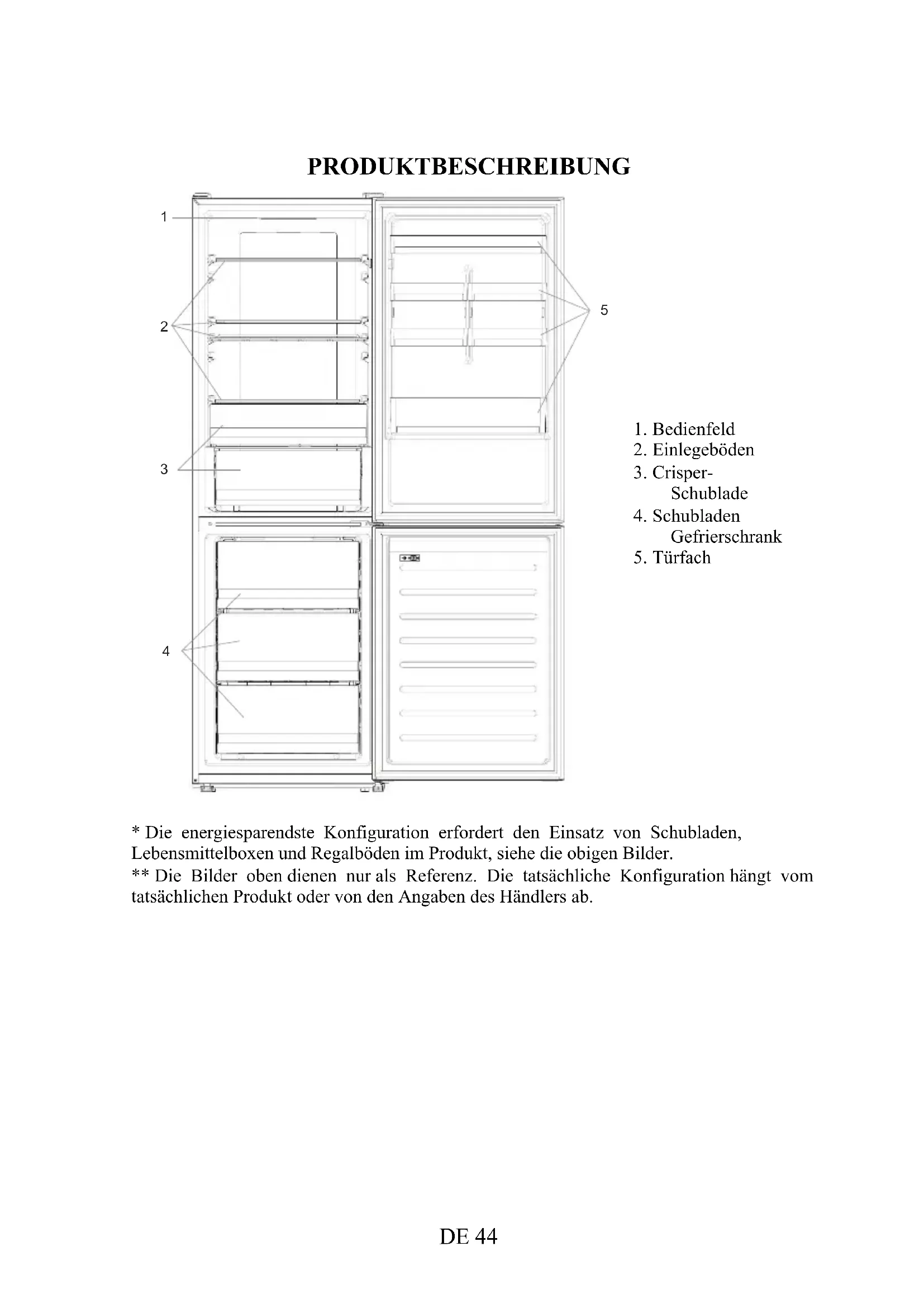- Die energiesparendste Konfiguration erfordert den Einsatz von Schubladen, Lebensmittelboxen und Regalböden im Produkt, siehe die obigen Bilder. ** Die Bilder oben dienen nur als Referenz. Die tatsächliche Konfiguration hängt vom tatsächlichen Produkt oder von den Angaben des Händlers ab.