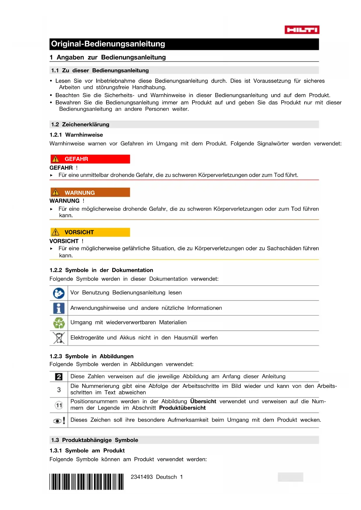 Der Hersteller erklärt in alleiniger Verantwortung, dass das hier beschriebene Produkt mit der geltenden Gesetzgebung und den geltenden Normen übereinstimmt. Die Technischen Dokumentationen sind hier hinterlegt: Hilti Entwicklungsgesellschaft mbH | Zulassung Geräte | Hiltistraße 6 | 86916 Kaufering, DE