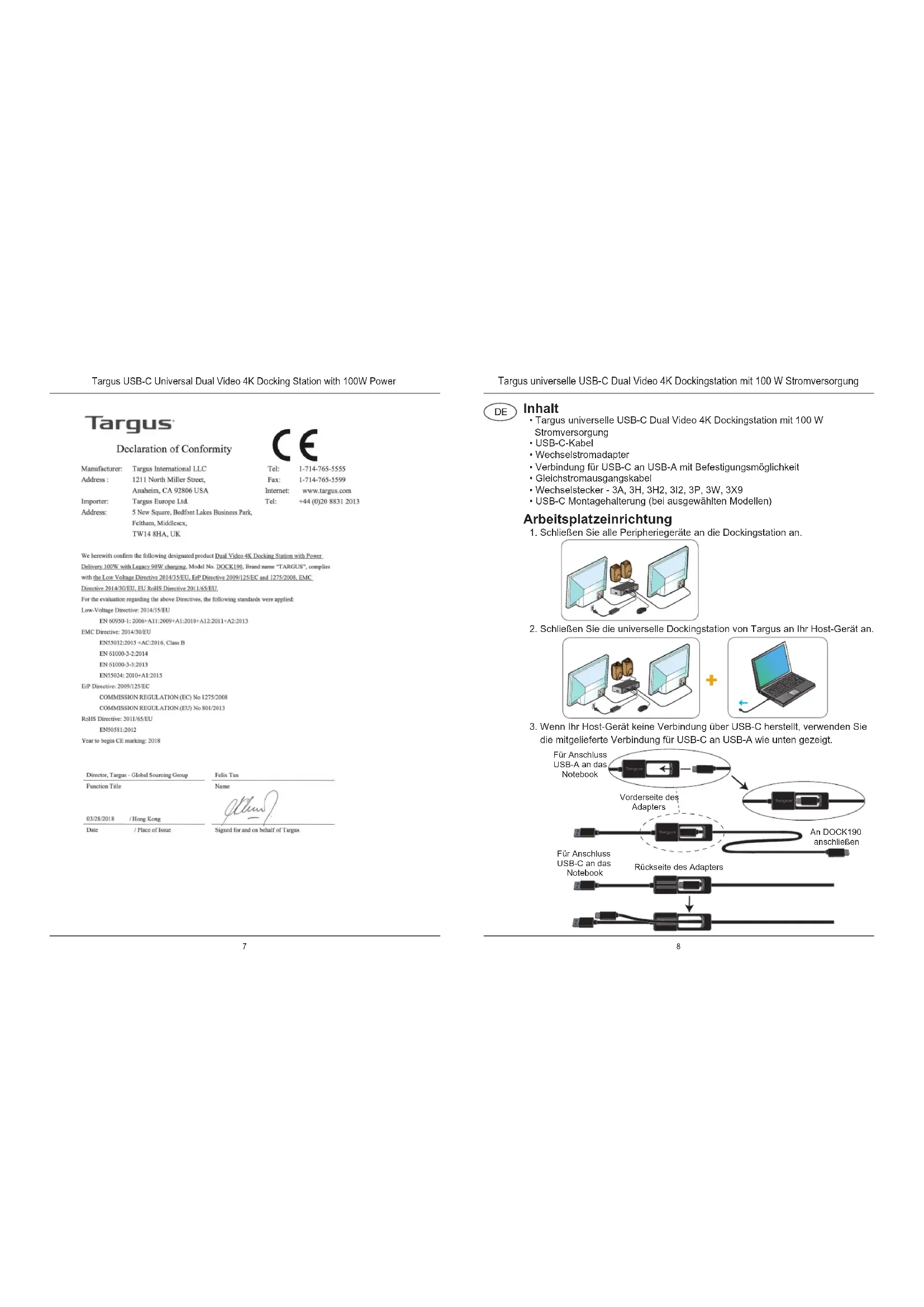 BEDIENUNGSANLEITUNG DOCK190REU TARGUS