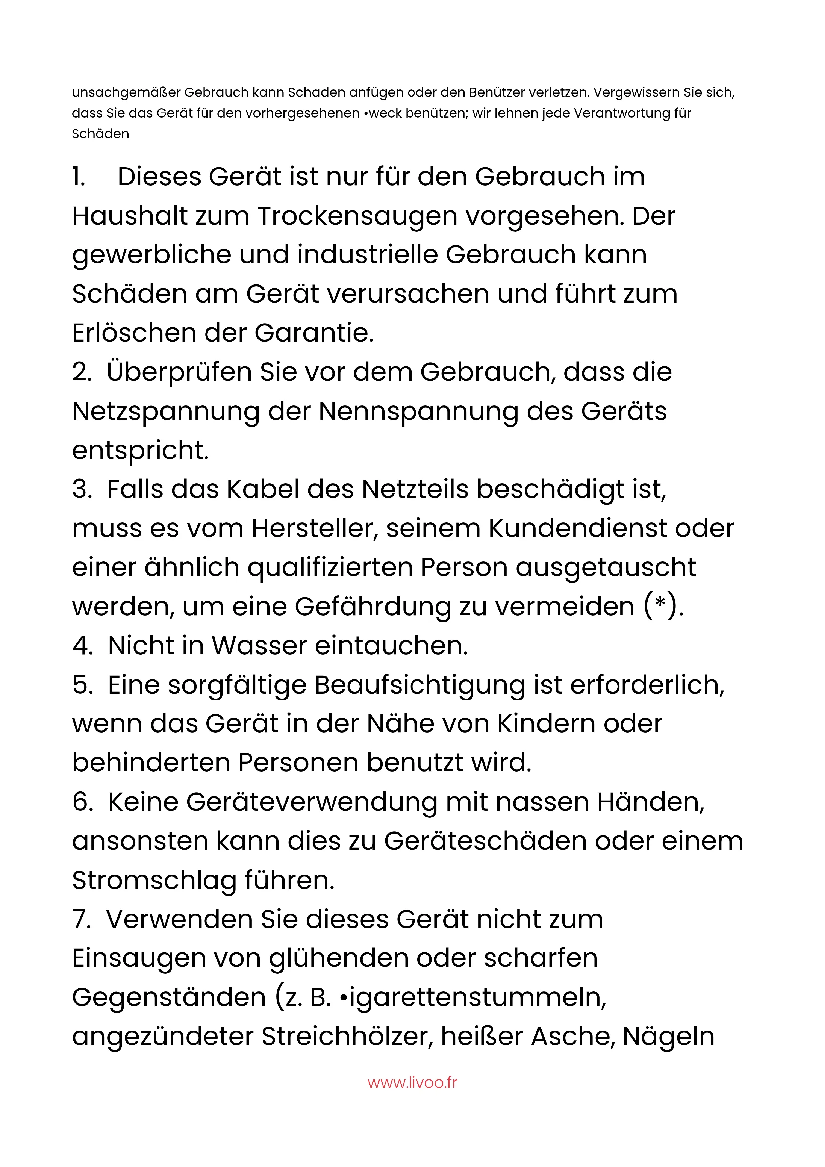 Verwendungszwecke, als für den bestimmungsgemäßen Gebrauch.www.livoo.fr