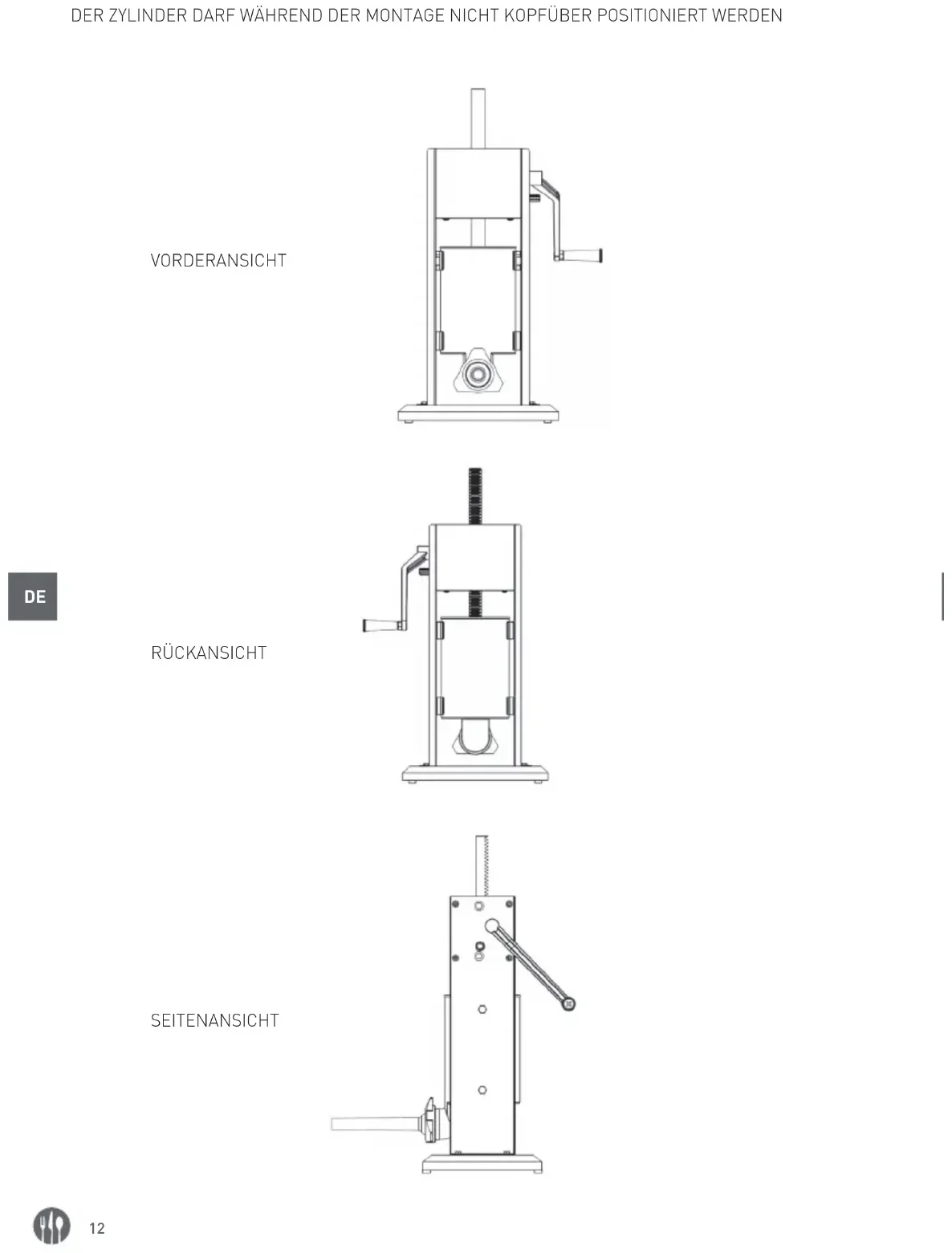- Jede andere Verwendung des Gerätes gilt als nicht bestimmungsgemäß. Der Benutzer ist al- lein verantwortlich für die unsachgemäße Nutzu- ng des Gerätes. Beschreibung des herstellungsverfahrens Mithilfe unseres Stopf-/Füllgeräts können Sie köstliche Wurstwaren herstellen. Das Gerät ist mit einem horizontalen und vertikalen Gestell ausges- tattet und besitzt ein neuartiges Getriebesystem. Der Kolben wird zum schnellen und bedienerfre- undlichen Befüllen über eine Getriebeuntersetzung mit Zweistufengetriebe angetrieben. Das Gerät eignet sich ideal für Wursthersteller oder Restaurants, die köstliche Wurstfüllungen selber herstellen möchten.11