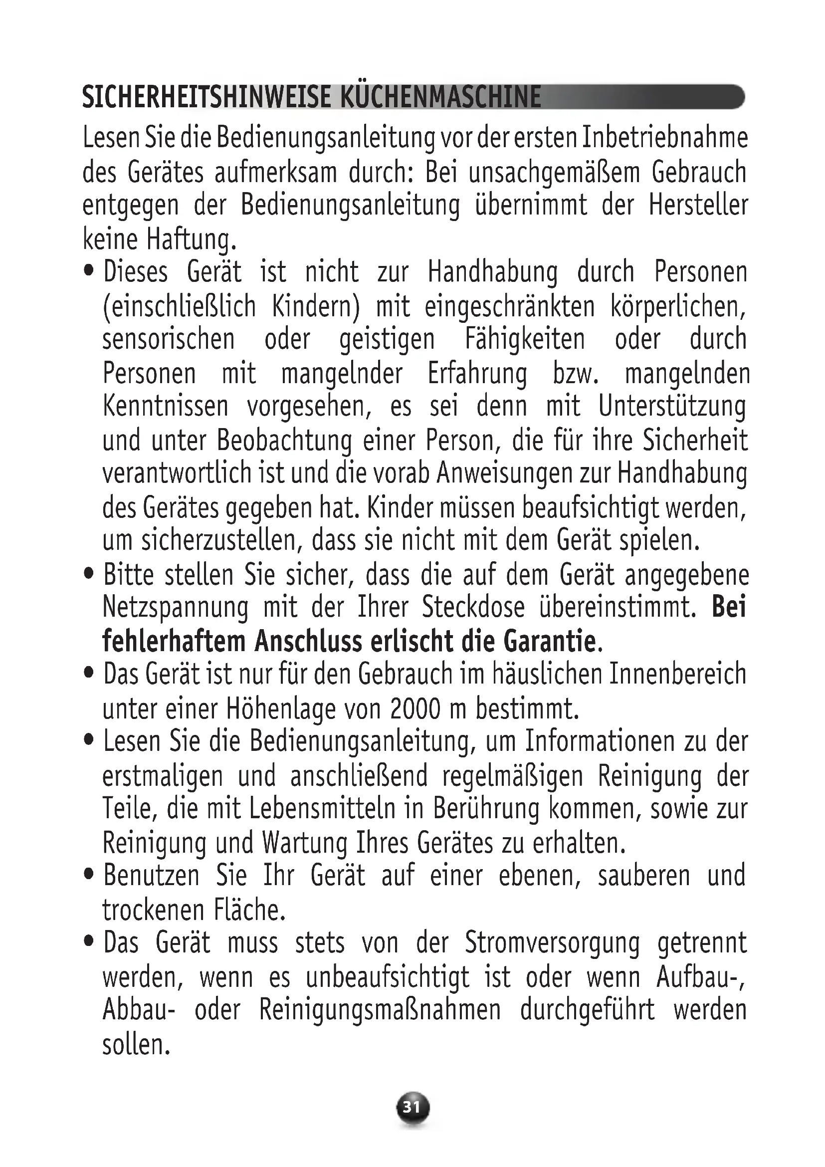 SICHERHEITSHINWEISE KÜCHENMASCHINE32