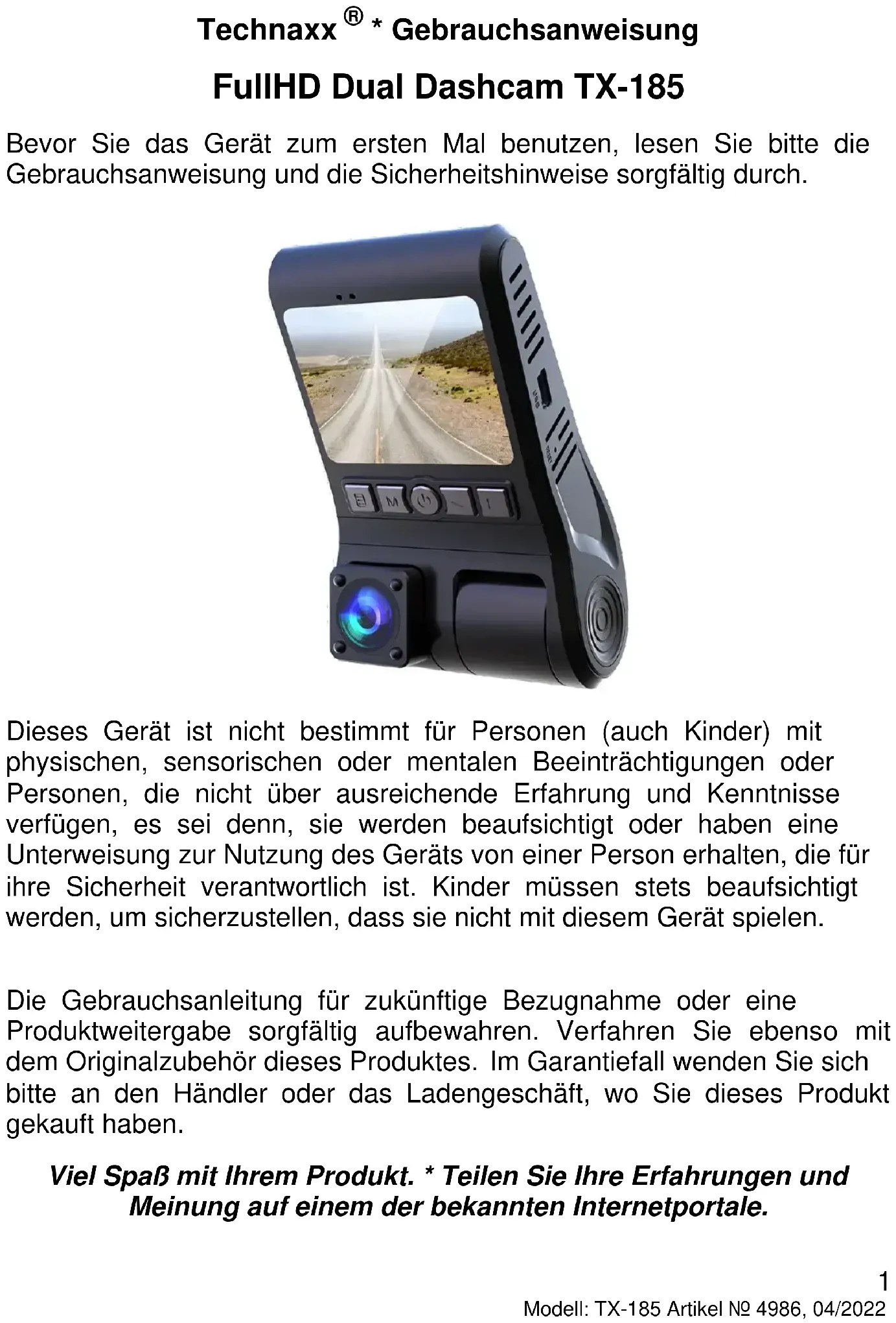 Modell: TX-185 Artikel Nr. 4986, 04/2022 Technaxx