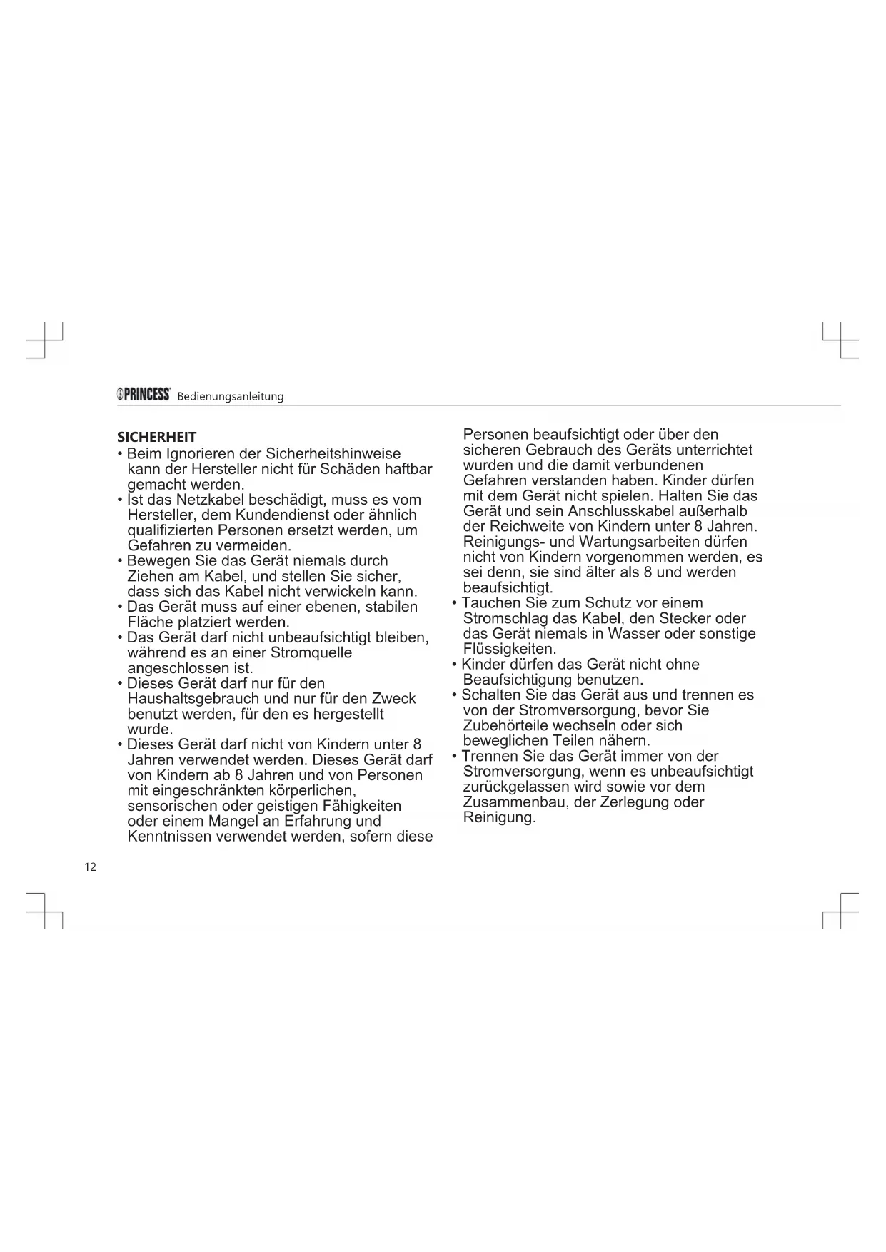 - Dieses Gerät darf nur für den Haushaltsgebrauch und nur für den Zweck benutzt werden, für den es hergestellt wurde.
