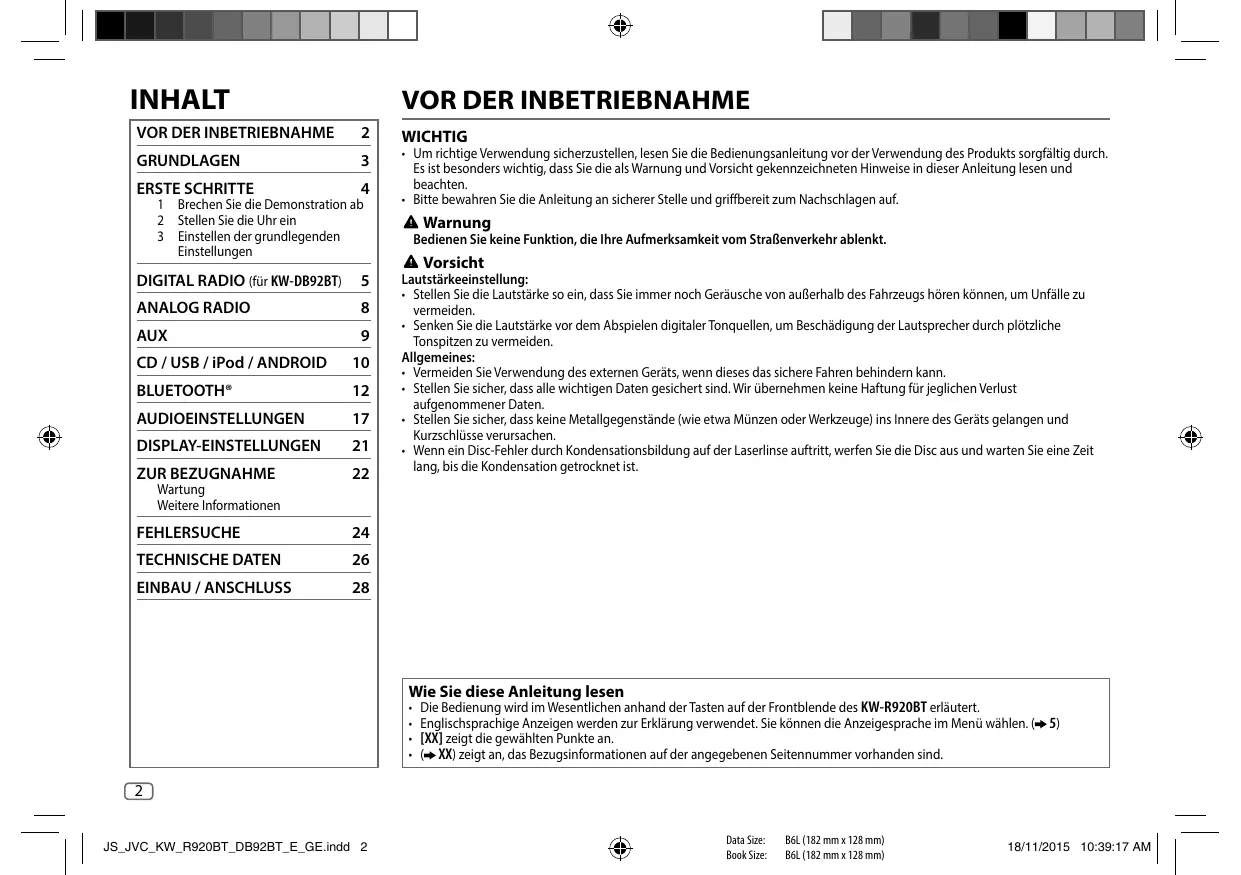 Finden Sie kostenlos die Bedienungsanleitung des Geräts KW-R920BT JVC als PDF.