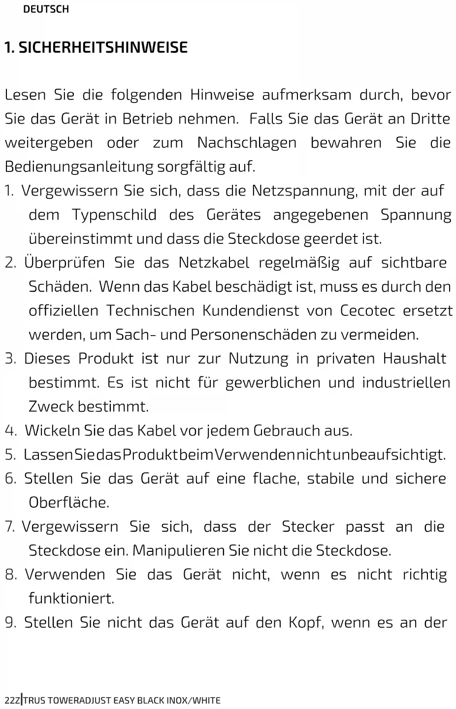 BEDIENUNGSANLEITUNG Zitrus TowerAdjust Easy CECOTEC