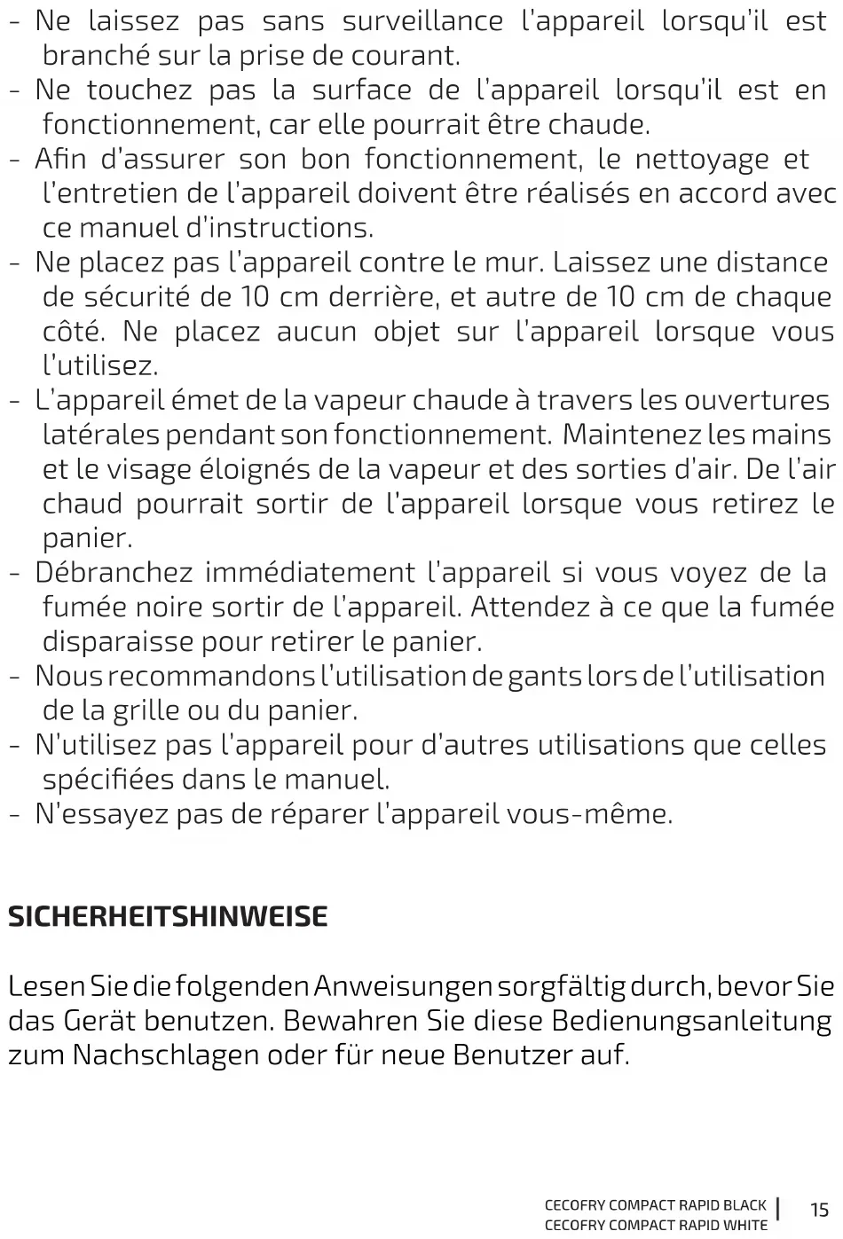 BEDIENUNGSANLEITUNG Cecofry Compact Rapid CECOTEC