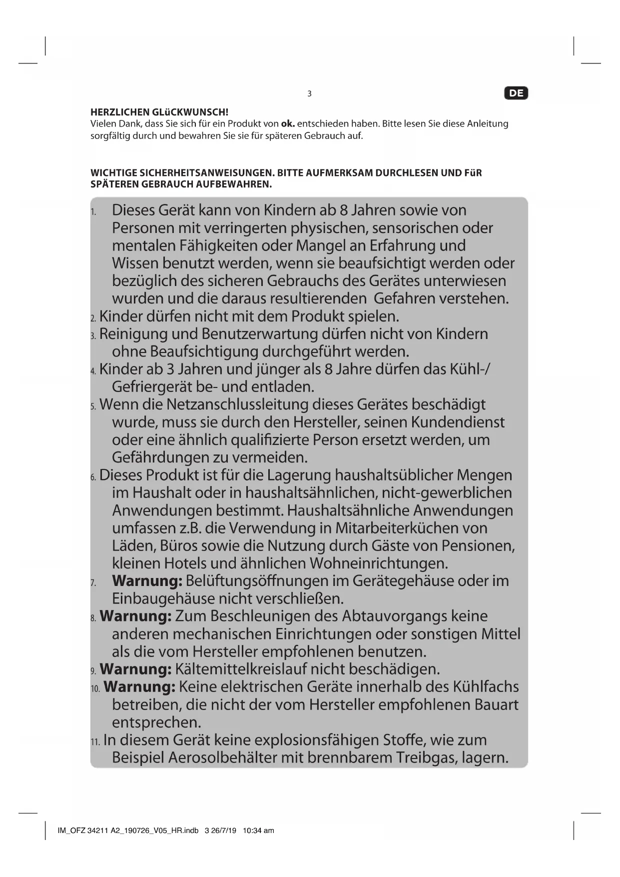 HERZLICHEN GLüCKWUNSCH! Vielen Dank, dass Sie sich für ein Produkt von ok. entschieden haben. Bitte lesen Sie diese Anleitung sorgfältig durch und bewahren Sie sie für späteren Gebrauch auf. WICHTIGE SICHERHEITSANWEISUNGEN. BITTE AUFMERKSAM DURCHLESEN UND FüR SPÄTEREN GEBRAUCH AUFBEWAHREN.