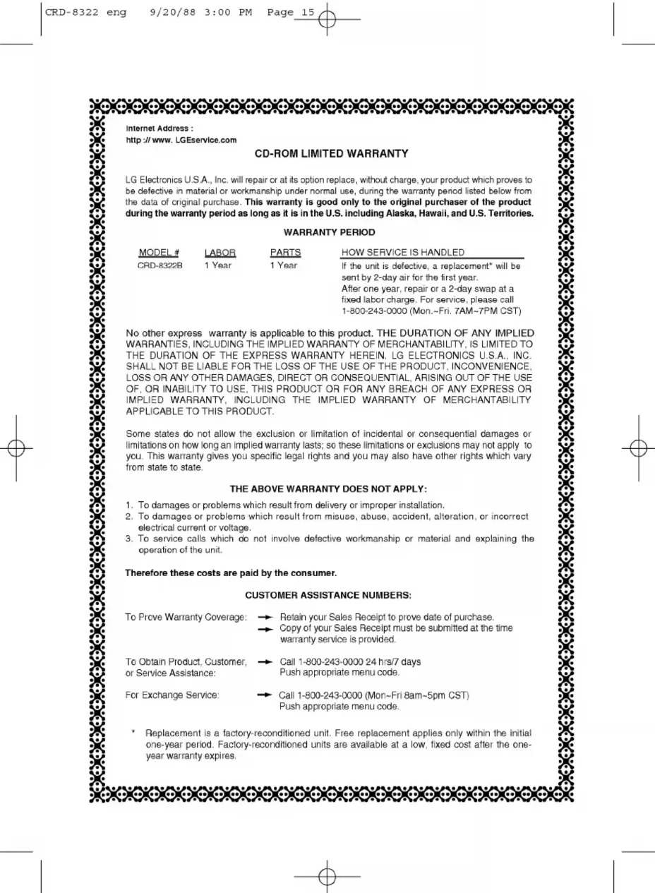 Finden Sie kostenlos die Bedienungsanleitung des Geräts CRD8322B LG als PDF.