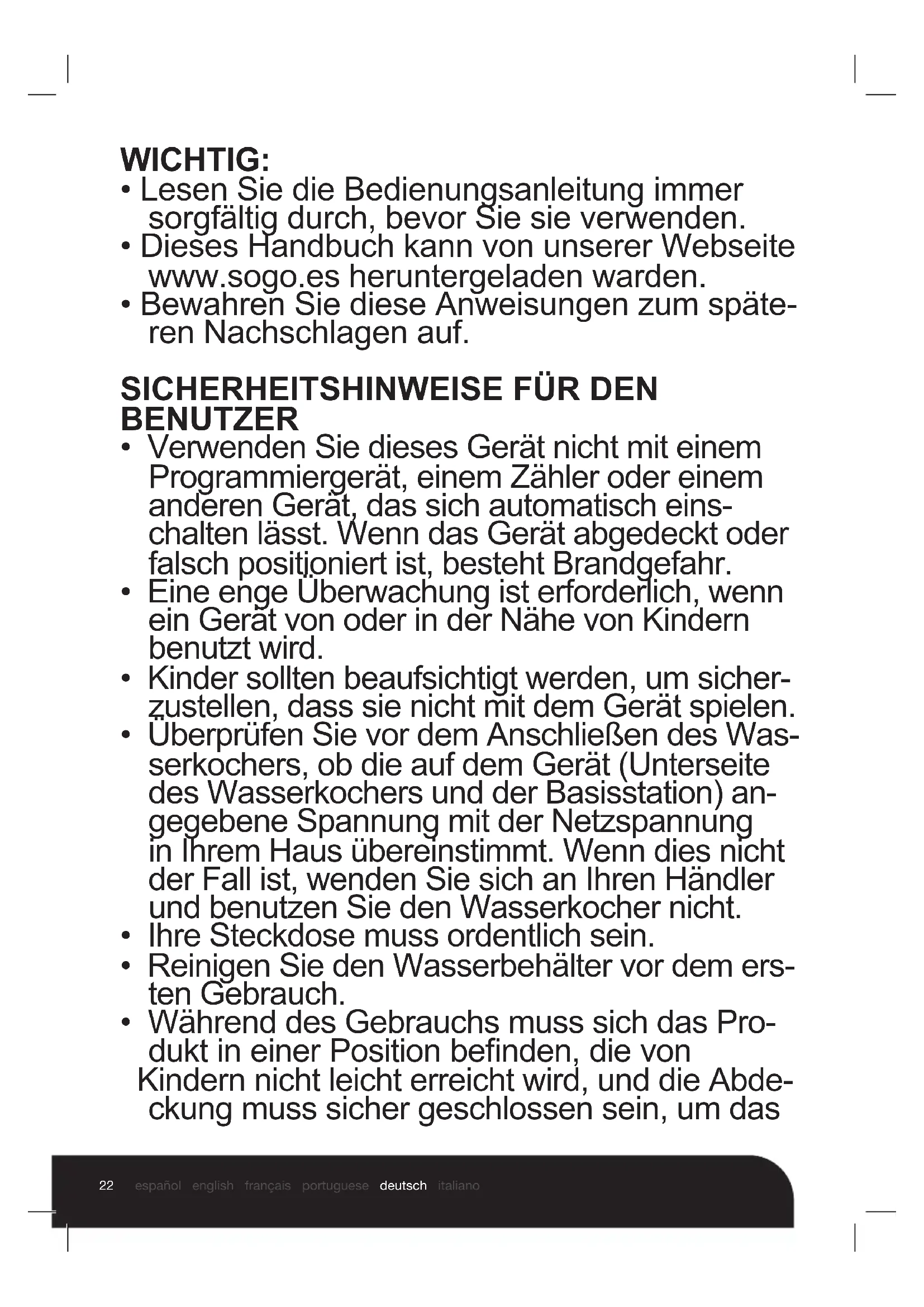 - Dieses Handbuch kann von unserer Webseite www.sogo.es heruntergeladen warden.