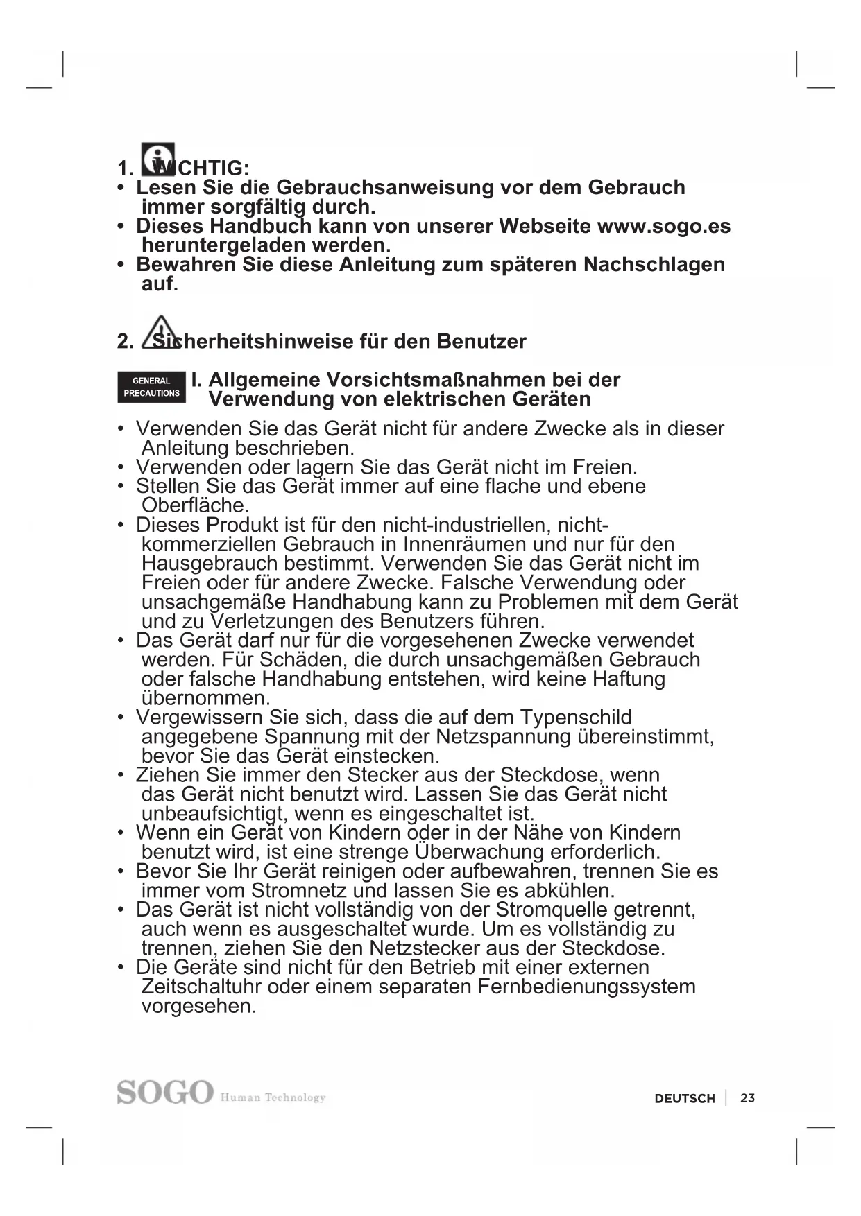 BEDIENUNGSANLEITUNG SS13915 Sogo