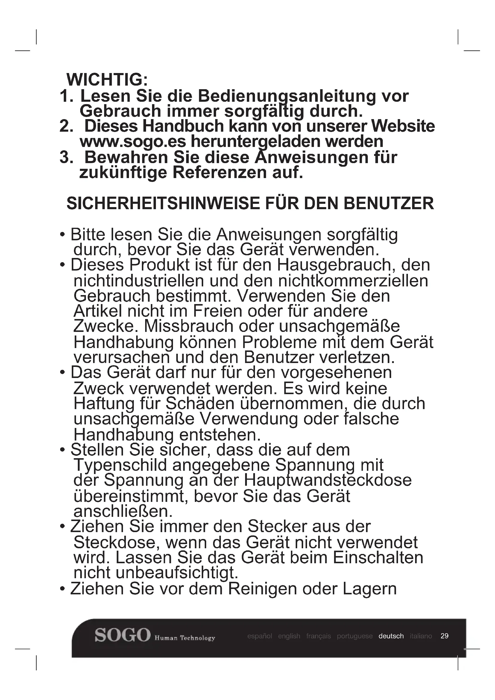 - Bitte lesen Sie die Anweisungen sorgfältig durch, bevor Sie das Gerät verwenden.