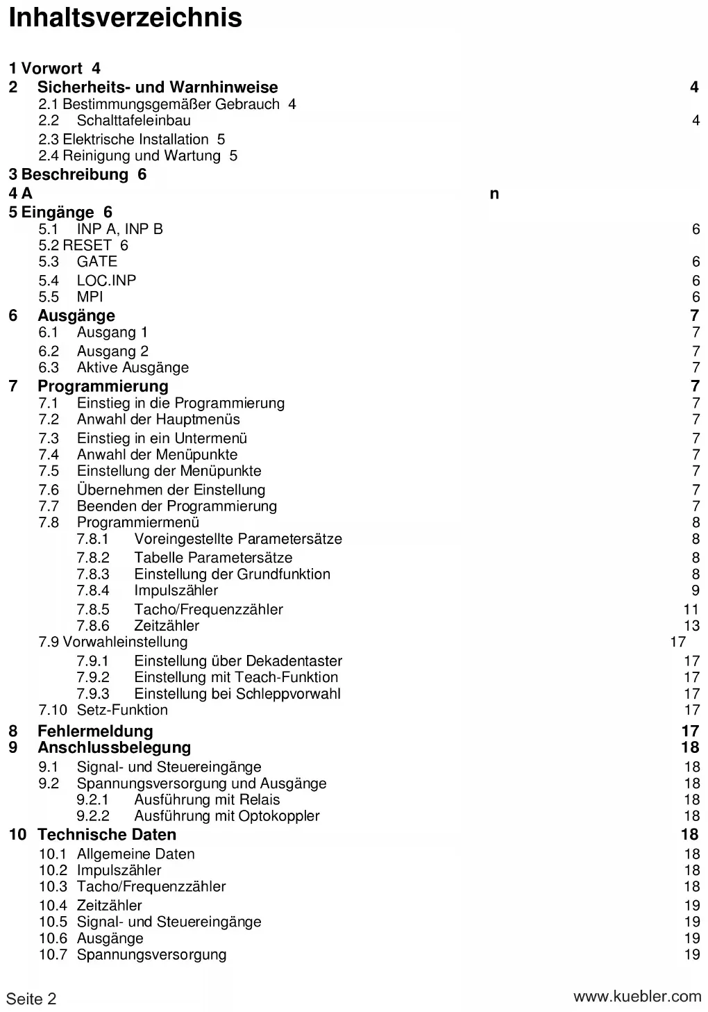 Sub: Anzeige Vorwahl -> 0 Seite 24 www.kuebler.com16 Eingangsarten Frequenzzähler