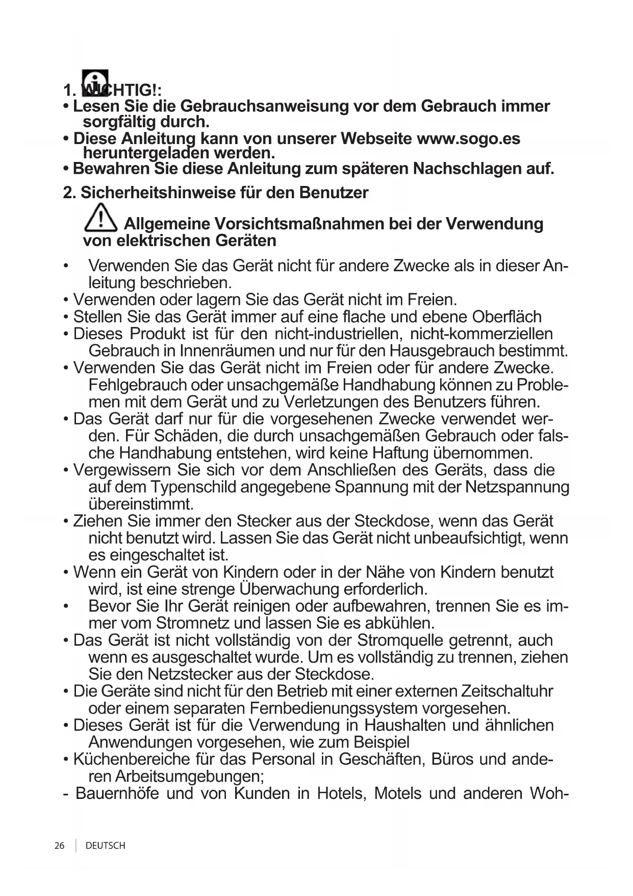 - Diese Anleitung kann von unserer Webseite www.sogo.es heruntergeladen werden.