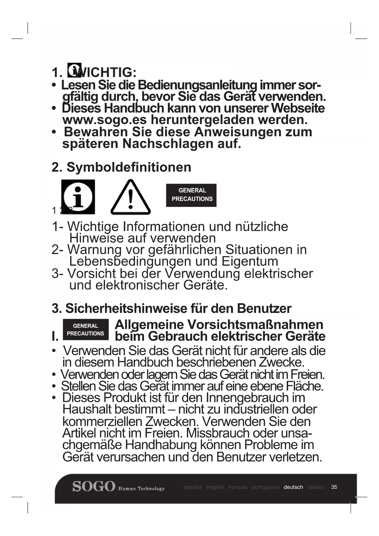 - Dieses Handbuch kann von unserer Webseite www.sogo.es heruntergeladen werden.