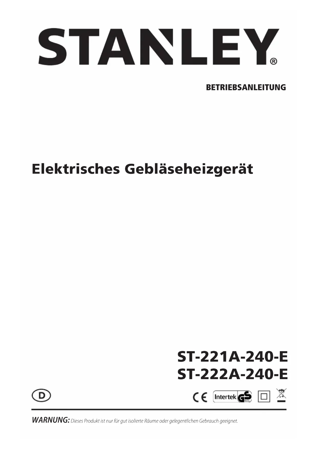 ST222A240E - Heizung STANLEY - Kostenlose Bedienungsanleitung