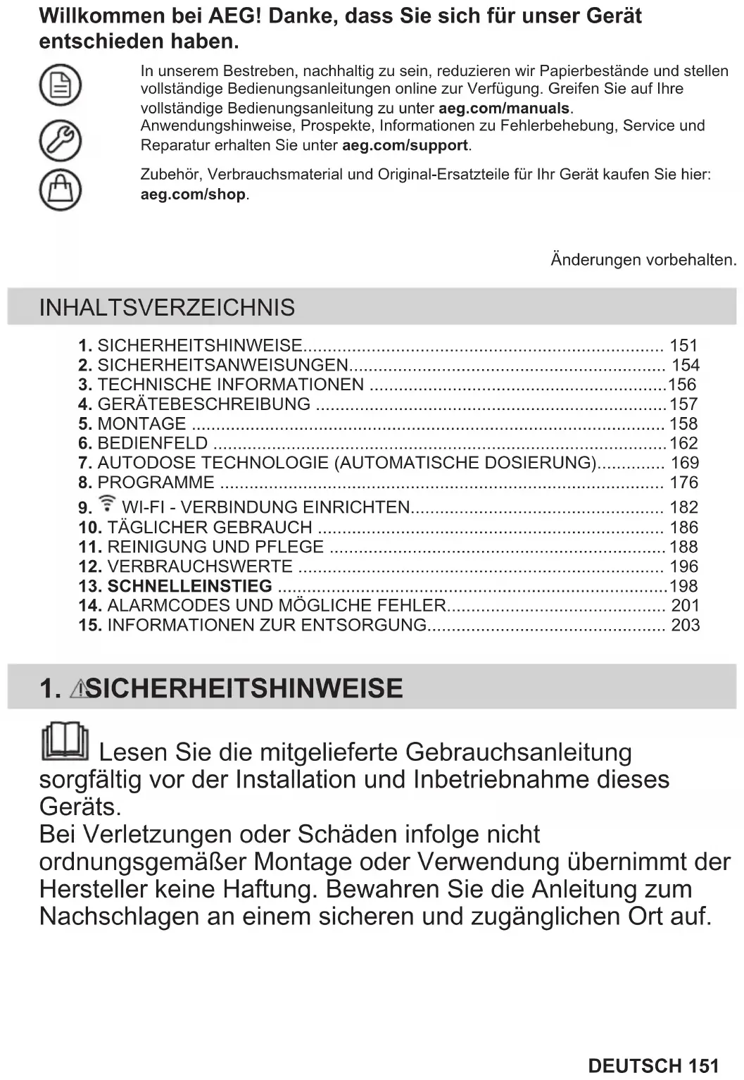 Lesen Sie die mitgelieferte Gebrauchsanleitung sorgfältig vor der Installation und Inbetriebnahme dieses Geräts. Bei Verletzungen oder Schäden infolge nicht ordnungsgemäßer Montage oder Verwendung übernimmt der Hersteller keine Haftung. Bewahren Sie die Anleitung zum Nachschlagen an einem sicheren und zugänglichen Ort auf. DEUTSCH 1511.1 Sicherheit von Kindern und schutzbedürftigen Personen