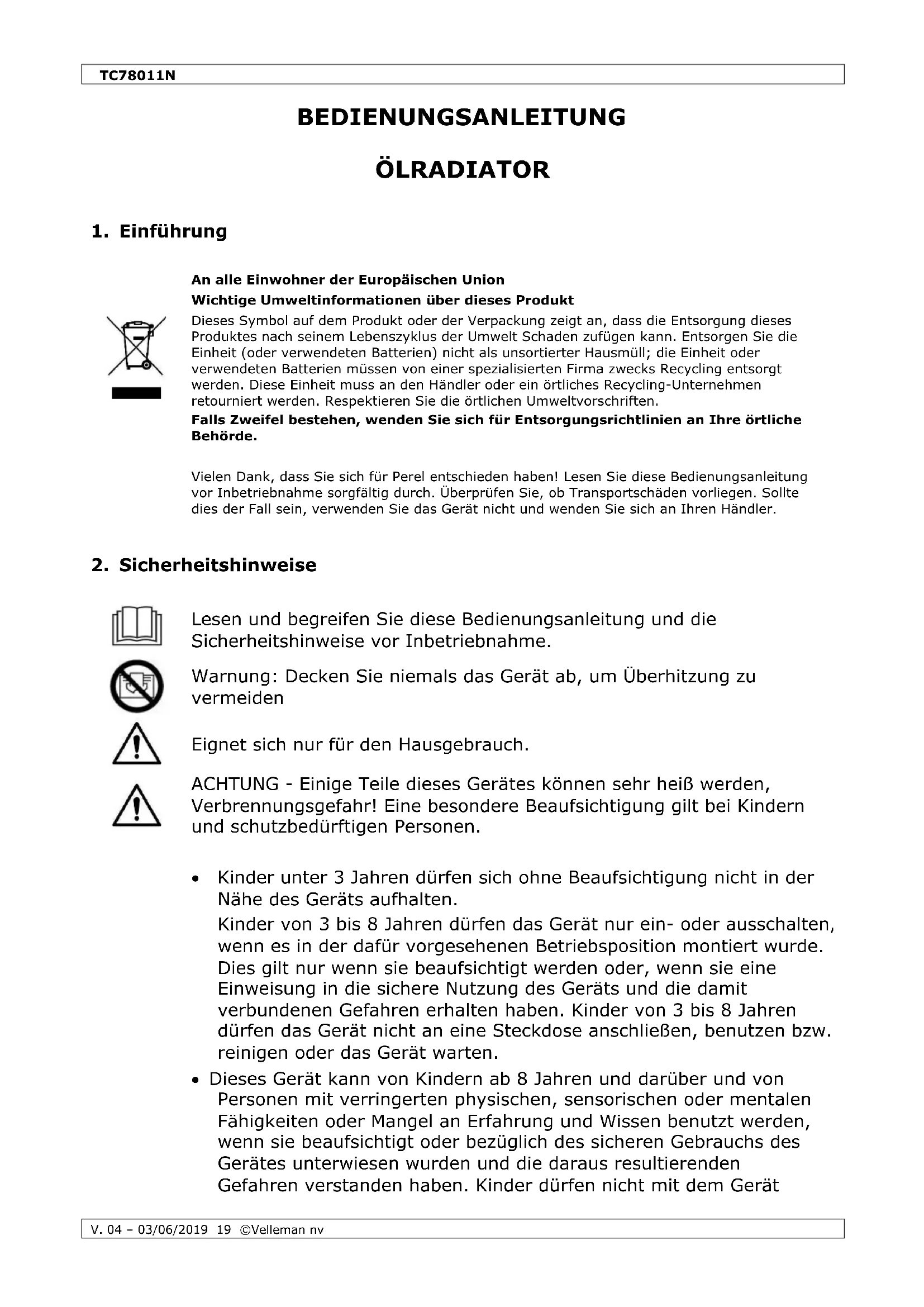BEDIENUNGSANLEITUNG ÖLRADIATOR