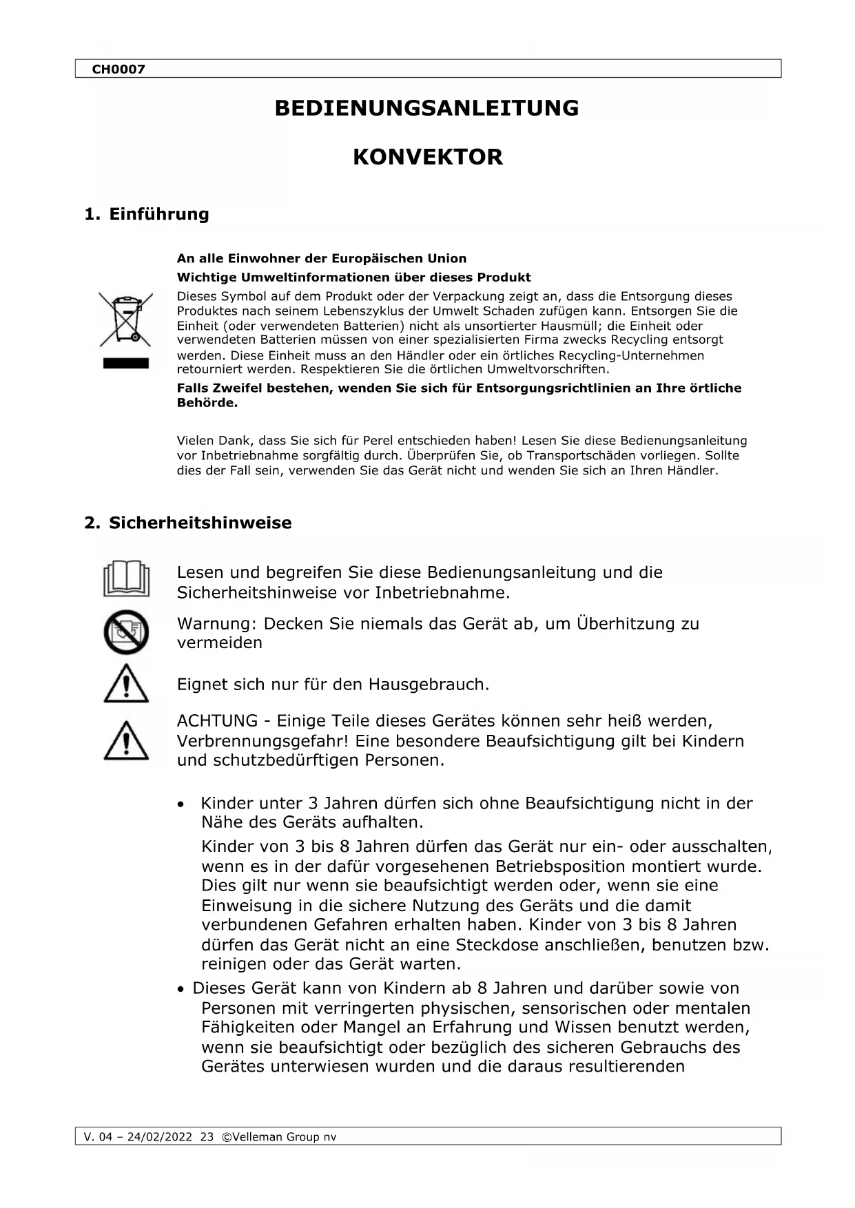 BEDIENUNGSANLEITUNG KONVEKTOR