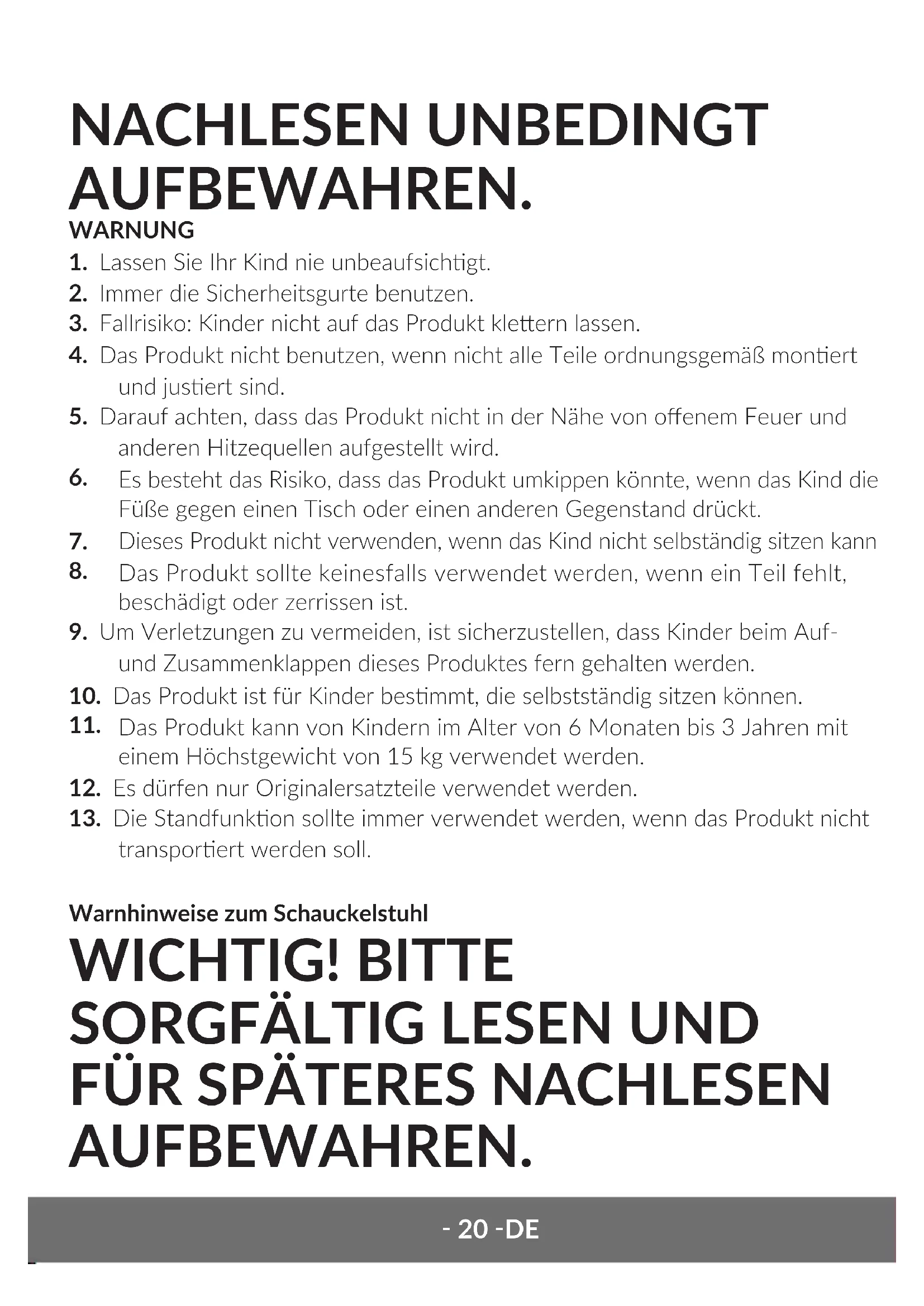 transporert werden soll. Warnhinweise zum Schauckelstuhl WICHTIG! BITTE