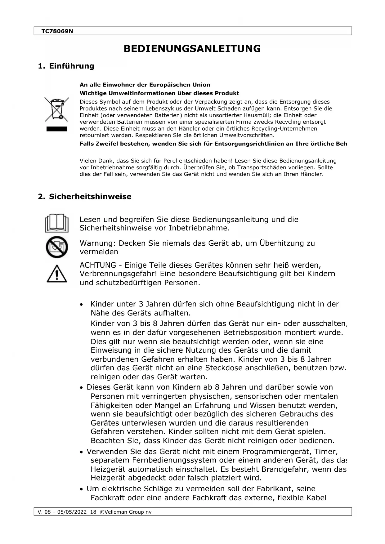 TC78069N - Heizung Perel - Kostenlose Bedienungsanleitung