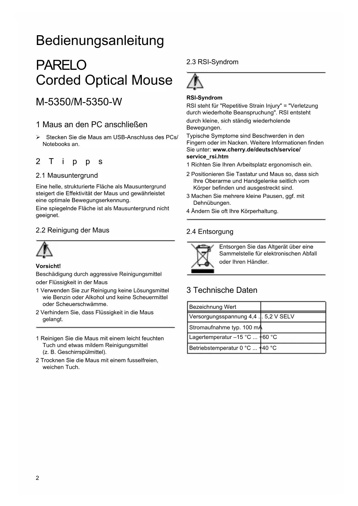 PARELO - Computermaus Cherry - Kostenlose Bedienungsanleitung