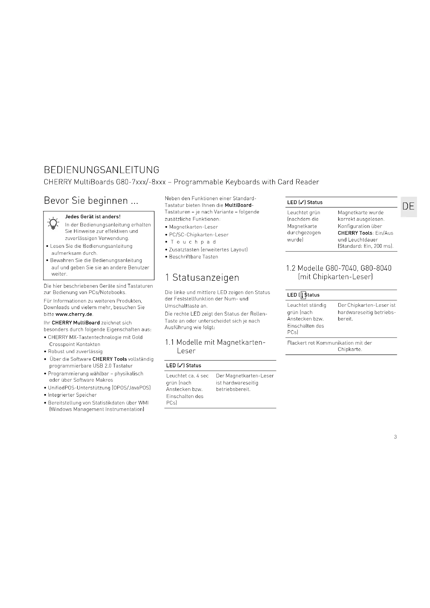 - CHERRY MultiBoards G80-7xxx/-8xxx Programmable Keyboards with Card Reader Bedienungsanleitung p. 3