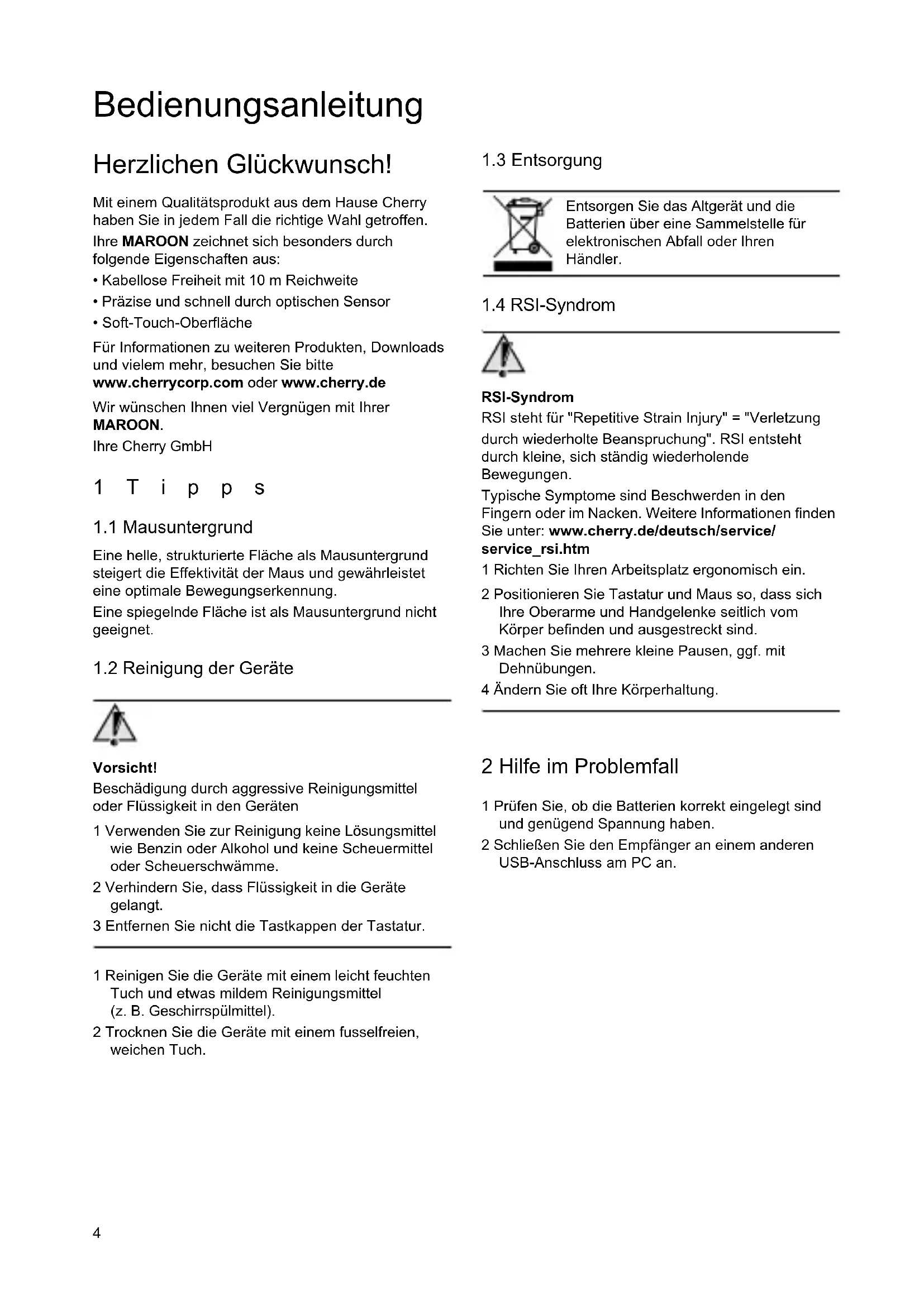 - Soft-Touch-Oberfläche Für Informationen zu weiteren Produkten, Downloads und vielem mehr, besuchen Sie bitte www.cherrycorp.com oder www.cherry.de Wir wünschen Ihnen viel Vergnügen mit Ihrer MAROON. Ihre Cherry GmbH 1Tipps