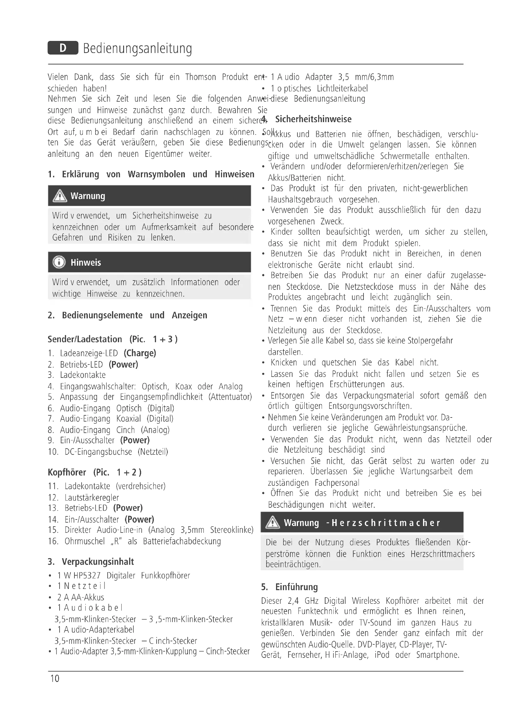 Finden Sie kostenlos die Bedienungsanleitung des Geräts WHP5327 THOMSON als PDF.