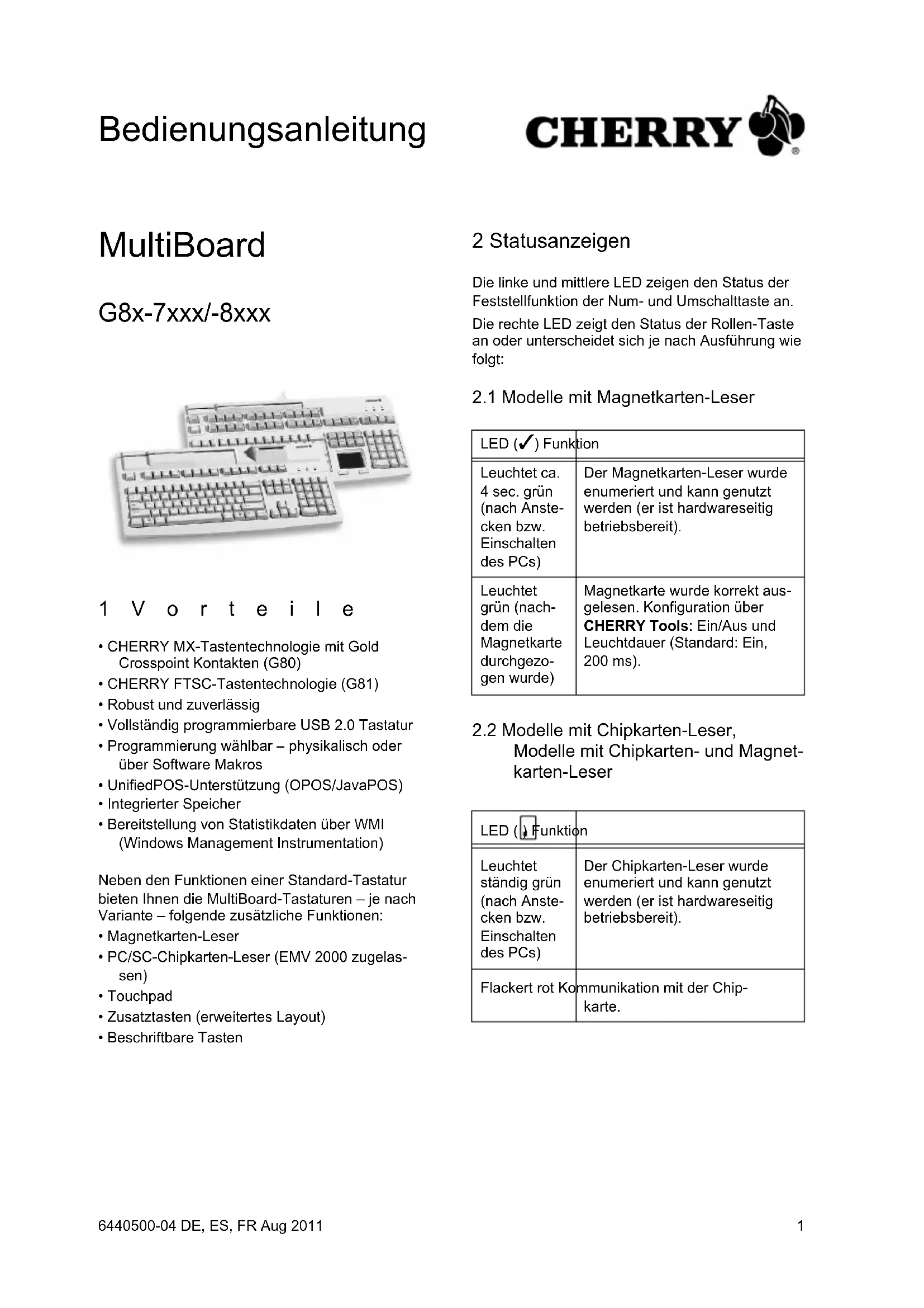 BEDIENUNGSANLEITUNG MultiBoard V2 G817043 Cherry
