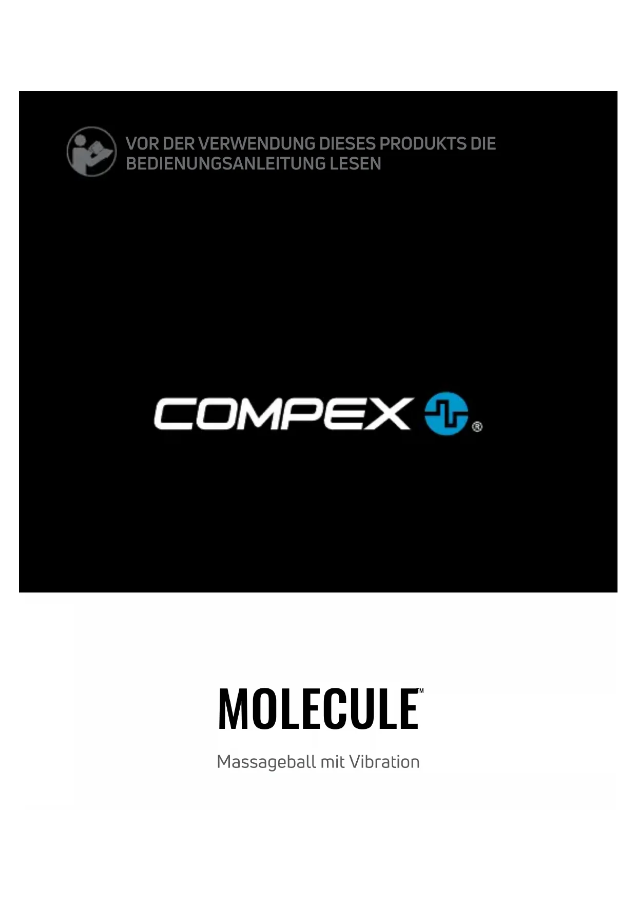 BETRIEBSANZEIGE EINFÜHRUNG Der Compex Molecule Massageball mit Vibration bietet vier Vibrationsstärken zur Linderung von Muskelschmerzen oder -verspannungen. Zur gezielten Verbesserung der Zirkulation sowie zur Linderung von Schmerzen und Muskelentzündungen. Dieses Produkt kann vor und nach dem Sport angewendet werden, um den Körper zu regenerieren und stärken.DE