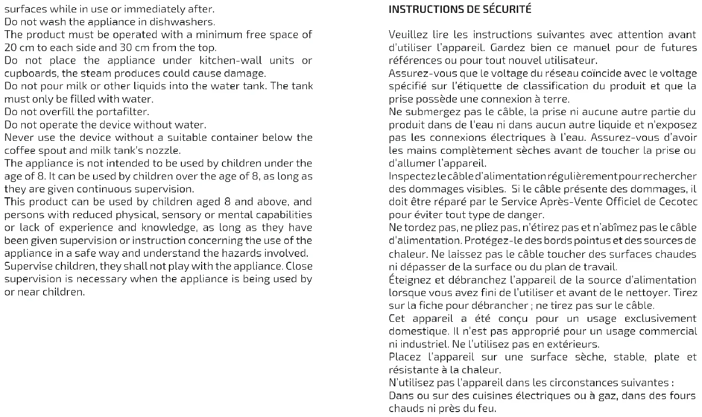BEDIENUNGSANLEITUNG Power Instantccino 20 CECOTEC