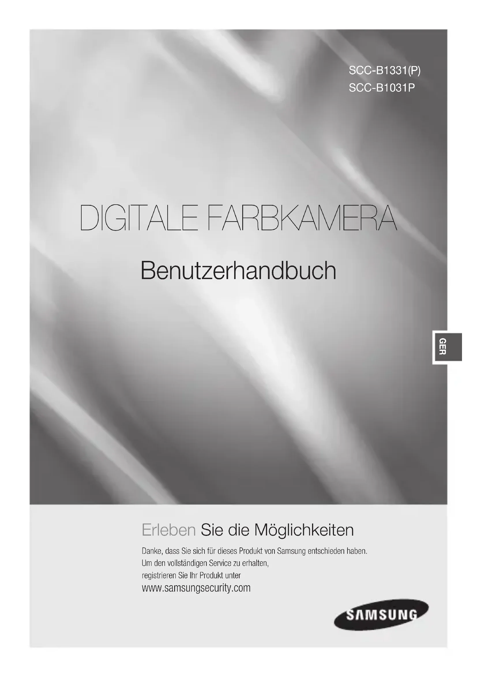 LED-Anzeige Ja Physikalische Angaben Größe (BxHxL) Netto SCC-B1331P : 64(B) x 58(H) x 109.2(L) mm SCC-B1031P : 64(B) x 58(H) x 129.2(L) mm Verpackung 173(B) x 99(H) x 115(L) mm Gewicht Netto SCC-B1331P : ca. 305g SCC-B1031P : ca. 395g Verpackung SCC-B1331P : ca. 530g SCC-B1031P : ca. 620g Farbe Gehäuse SilberKorrekte Entsorgung von Altgeräten (Elektroschrott) (In den Ländern der Europäischen Union und anderen europäischen Ländern mit einem separaten Sammelsystem) Die Kennzeichnung auf dem Produkt, Zubehörteilen bzw. auf der dazugehörigen Dokumentation gibt an, dass das Produkt und Zubehörteile (z. B. Ladegerät, Kopfhörer, USB-Kabel) nach ihrer Lebensdauer nicht zusammen mit dem normalen Haushaltsmüll entsorgt werden dürfen. Entsorgen Sie dieses Gerät und Zubehörteile bitte getrennt von anderen Abfällen, um der Umwelt bzw. der menschlichen Gesundheit nicht durch unkontrollierte Müllbeseitigung zu schaden. Helfen Sie mit, das Altgerät und Zubehörteile fachgerecht zu entsorgen, um die nachhaltige Wiederverwertung von stofflichen Ressourcen zu fördern. Private Nutzer wenden sich an den Händler, bei dem das Produkt gekauft wurde, oder kontaktieren die zuständigen Behörden, um in Erfahrung zu bringen, wo Sie das Altgerät bzw. Zubehörteile für eine umweltfreundliche Entsorgung abgeben können. Gewerbliche Nutzer wenden sich an ihren Lieferanten und gehen nach den Bedingungen des Verkaufsvertrags vor. Dieses Produkt und elektronische Zubehörteile dürfen nicht zusammen mit anderem Gewerbemüll entsorgt werden.CÁMARA DIGITAL A COLOR Manual del usuario SCC-B1331(P) SCC-B1031P imagine las posibilidades Gracias por adquirir este producto Samsung. Para recibir un servicio más completo, registre su producto en www.samsungsecurity.com