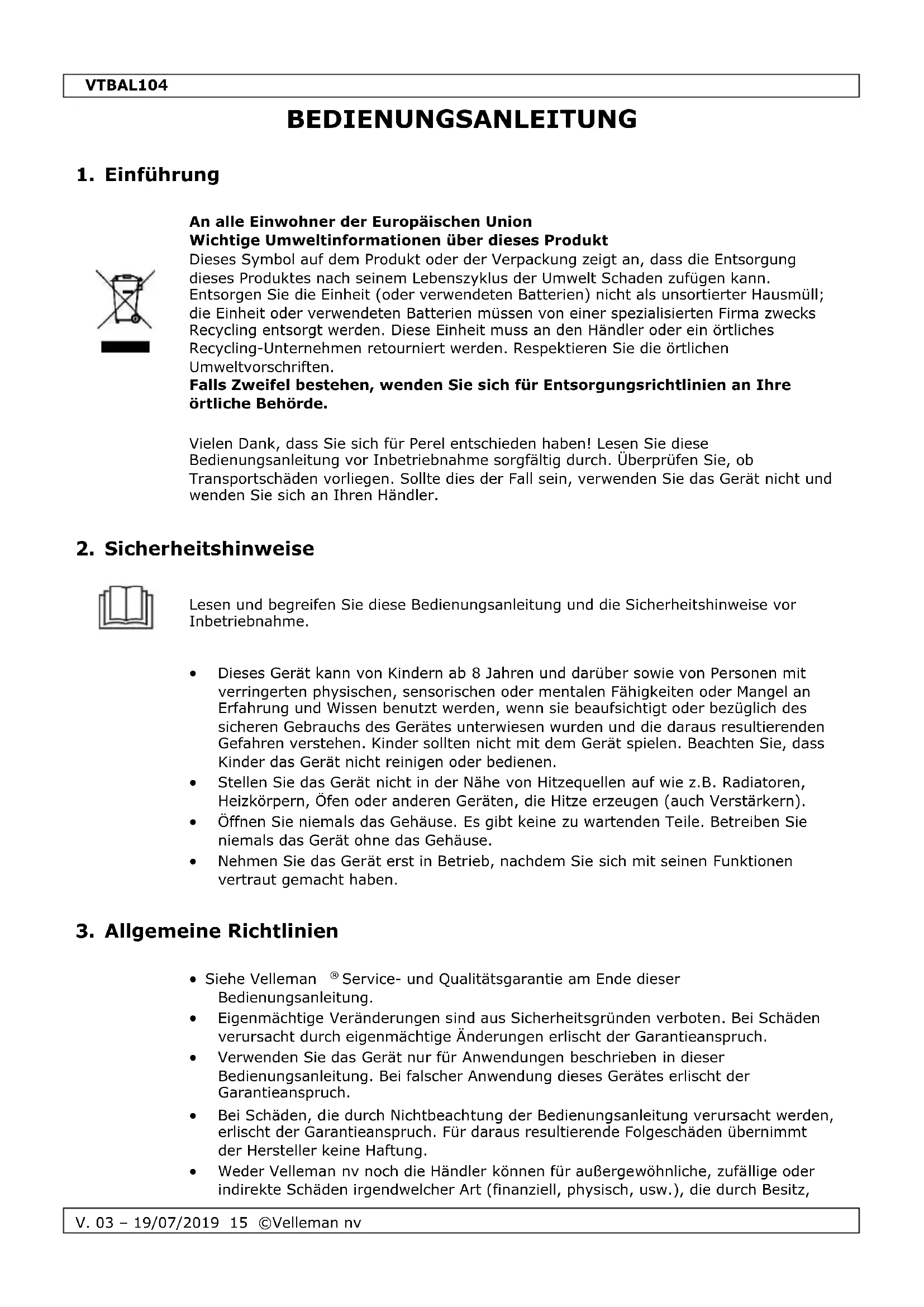 VTBAL104 - Waagen Perel - Kostenlose Bedienungsanleitung