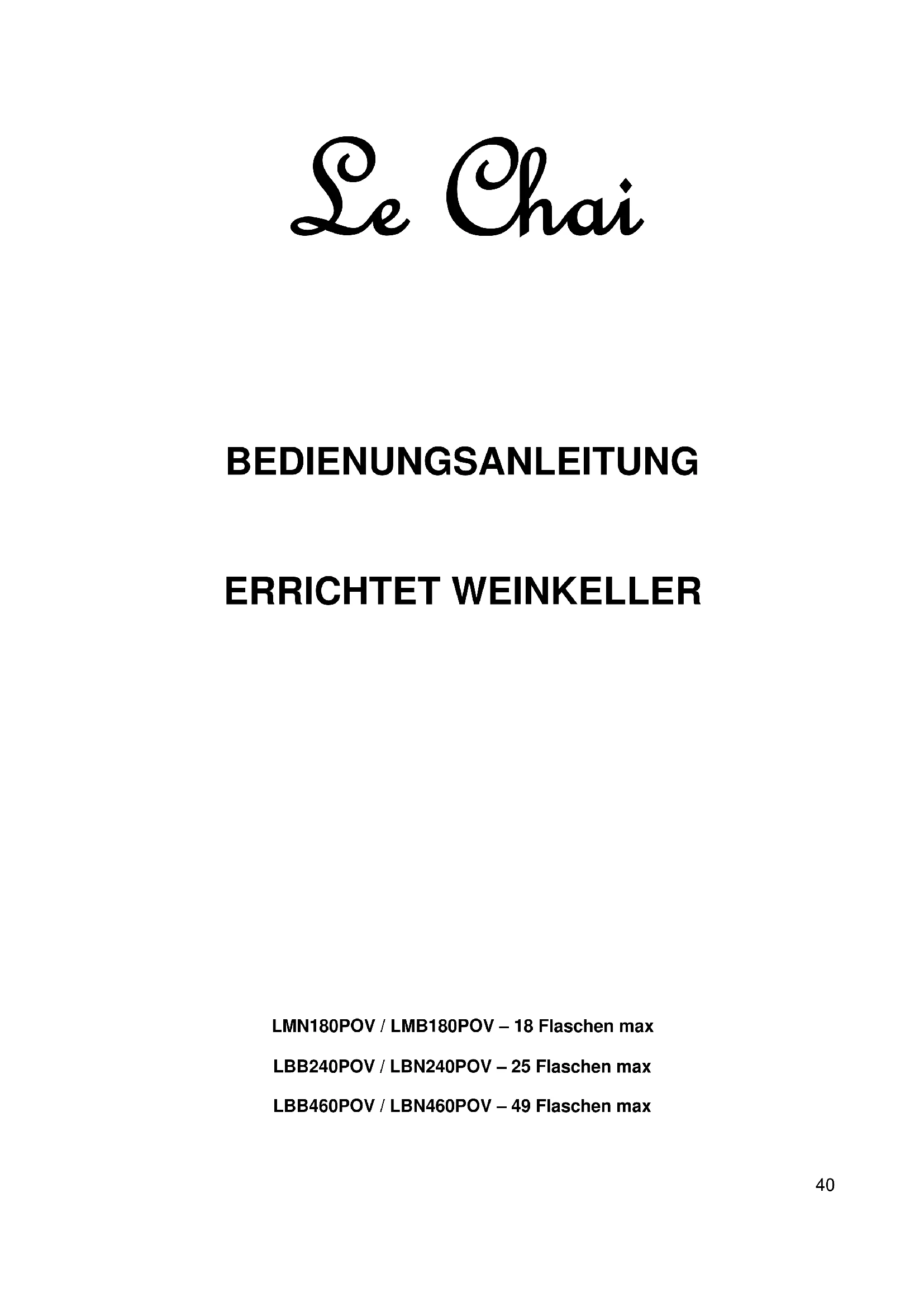 LBN 460POV - Weinkeller LE CHAI - Kostenlose Bedienungsanleitung