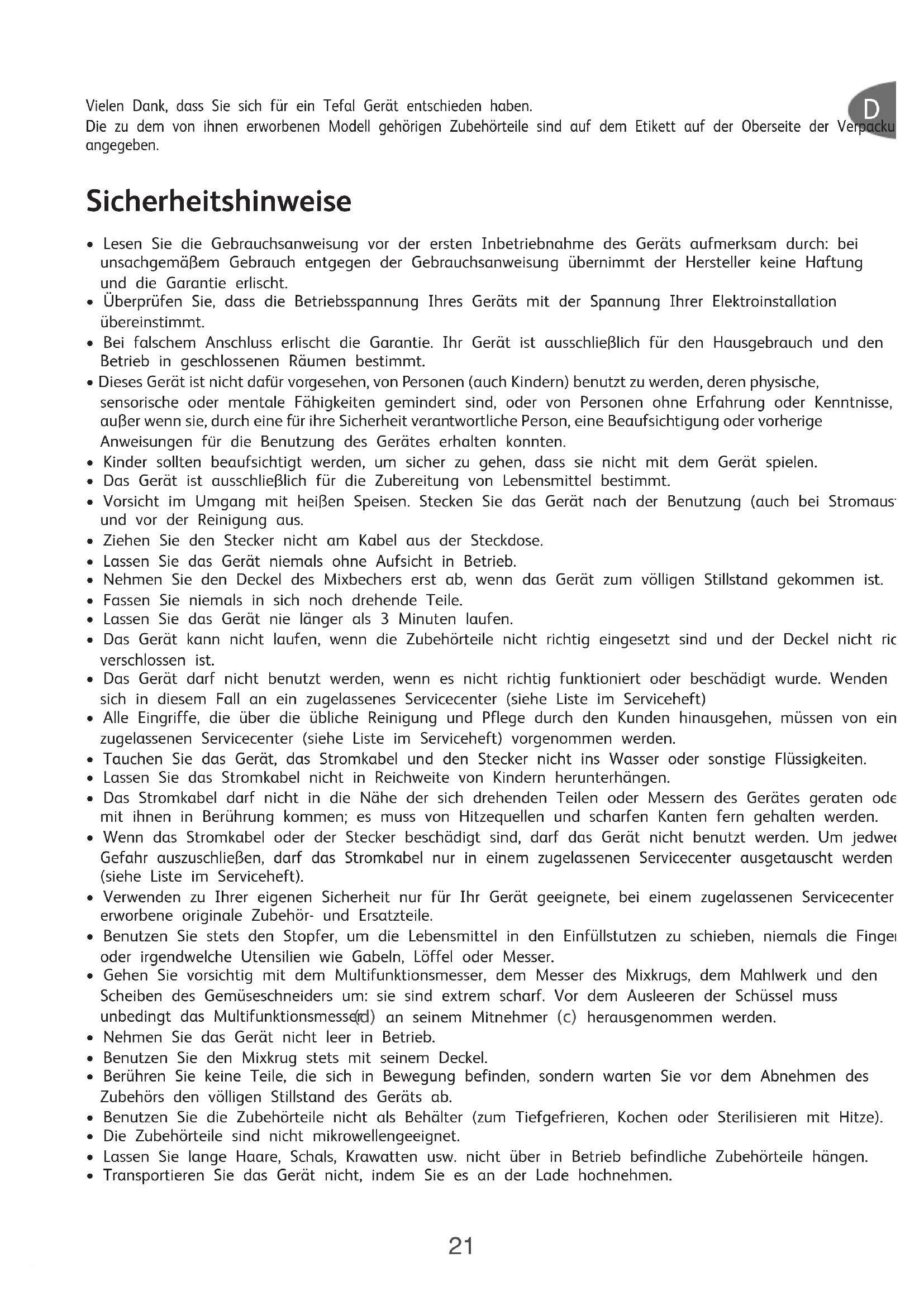 - Das Gerät ist ausschließlich für die Zubereitung von Lebensmittel bestimmt.