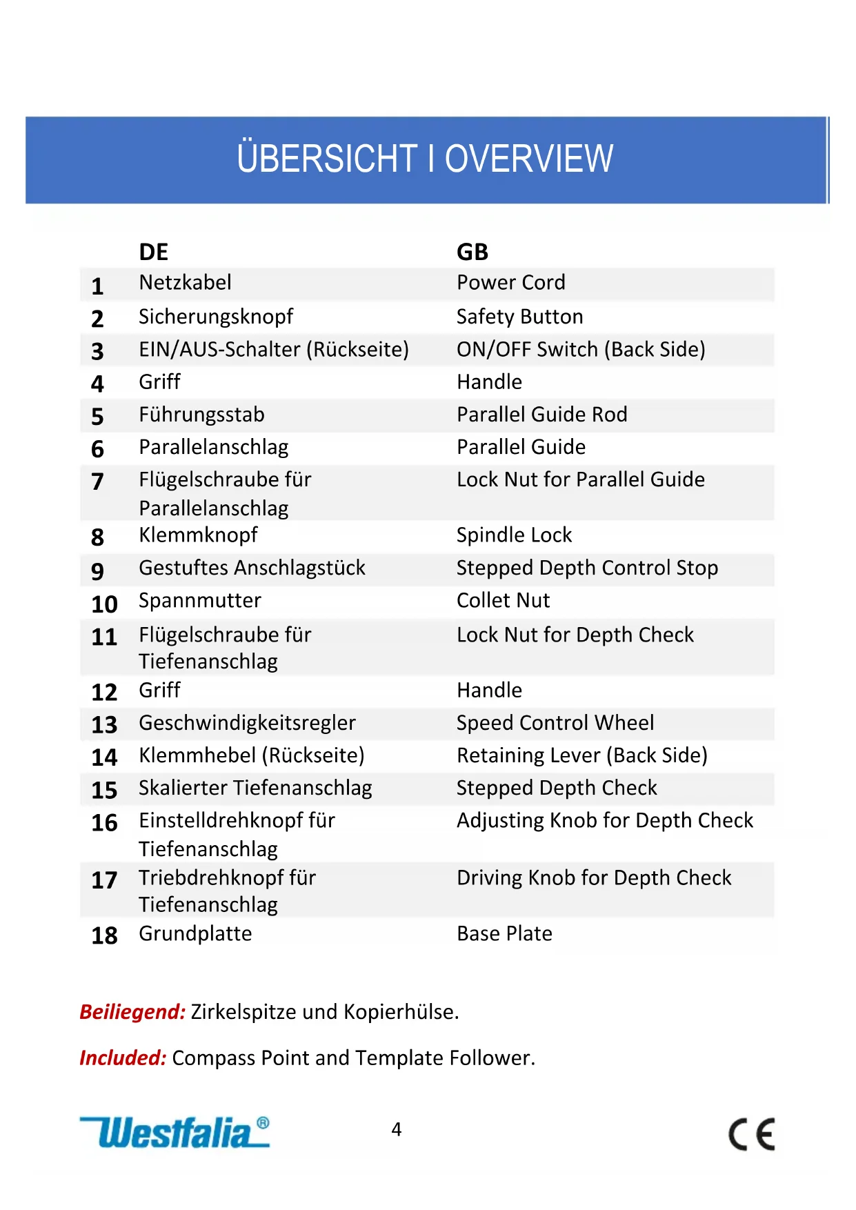 WOF 1600 - Fräsmaschine Westfalia - Kostenlose Bedienungsanleitung