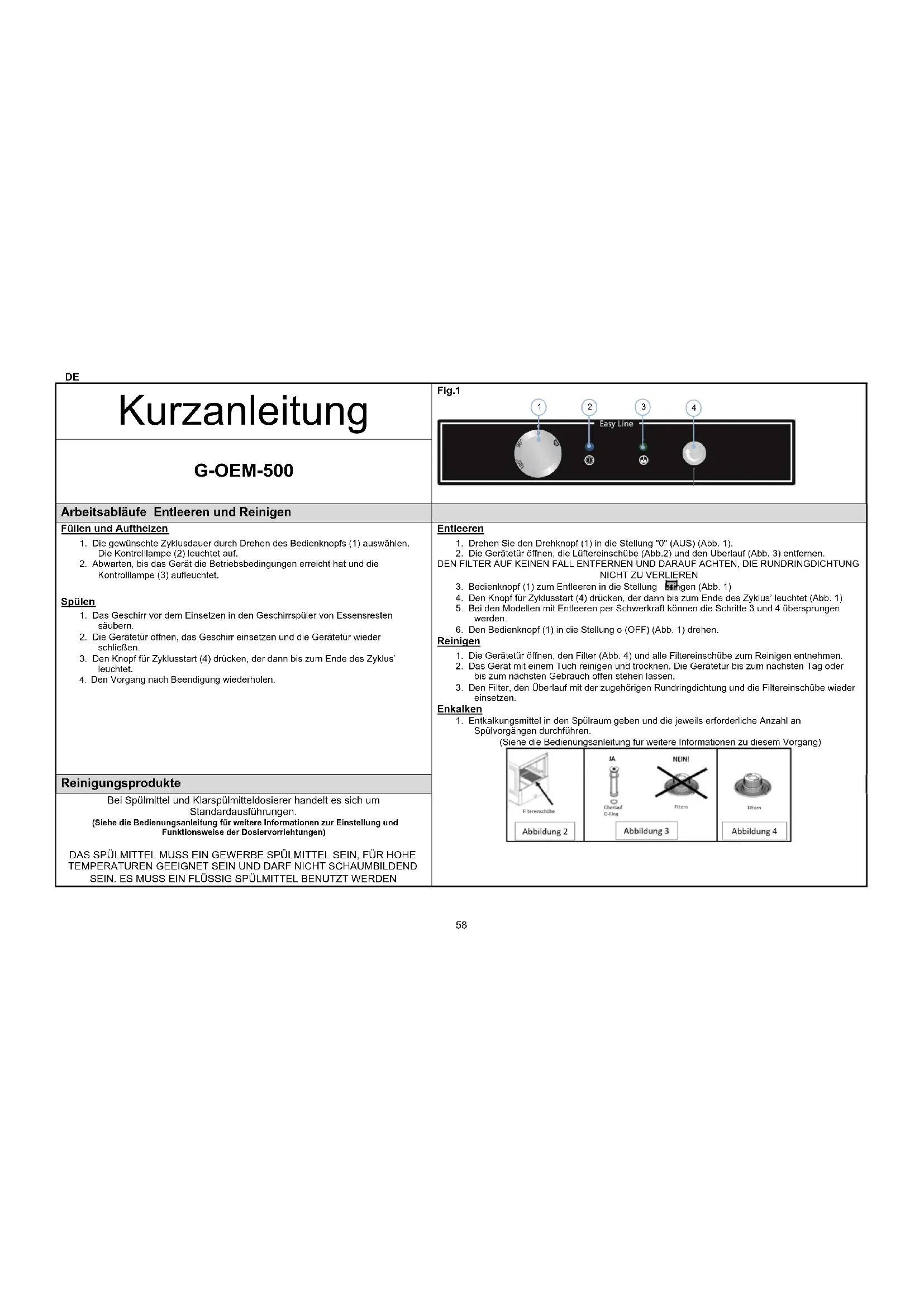 Kurzanleitung Fig.1 GM-OEM-500 Arbeitsabläufe Entleeren und Reinigen Füllen und Auftheizen