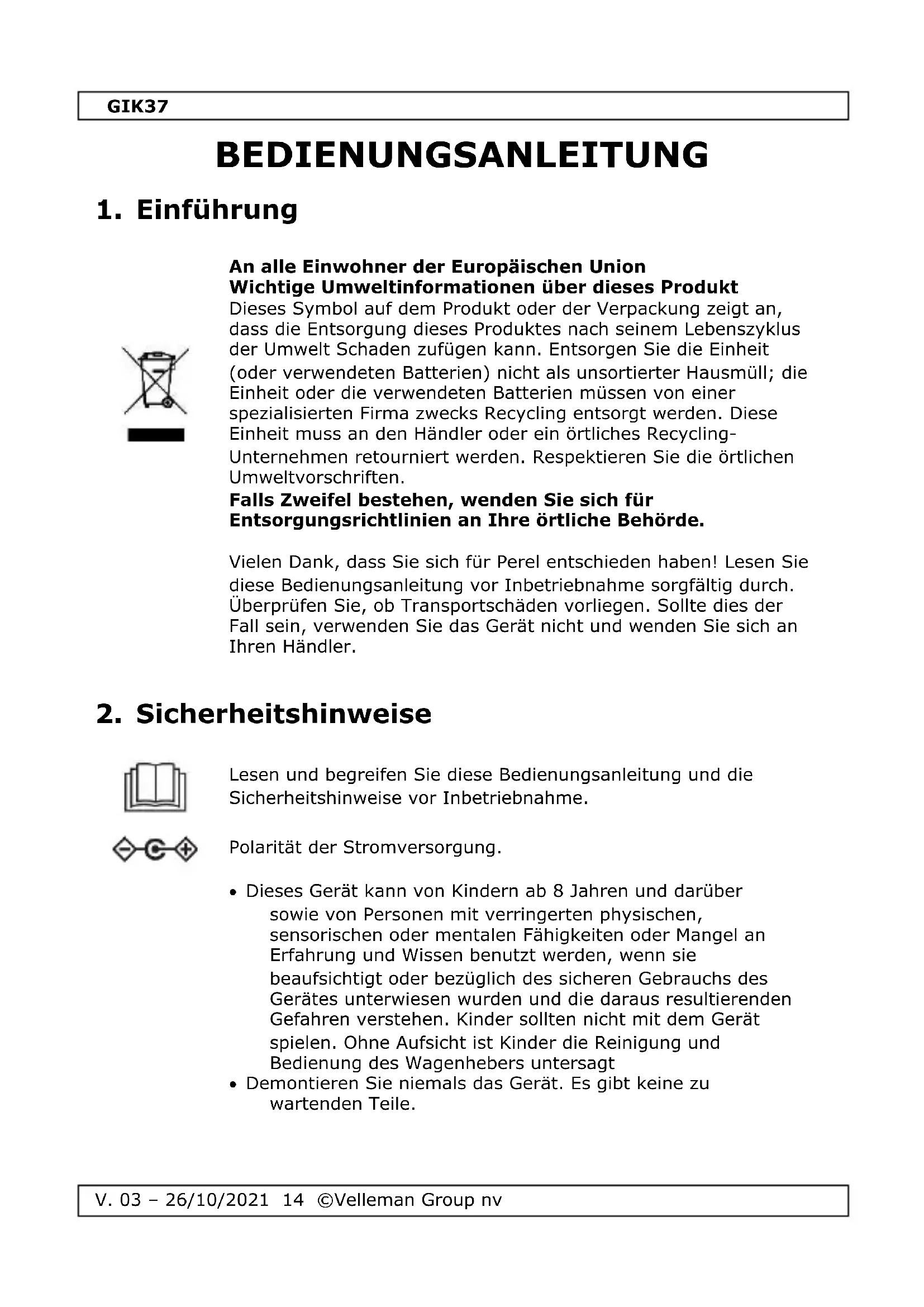 BEDIENUNGSANLEITUNG GIK37 Perel