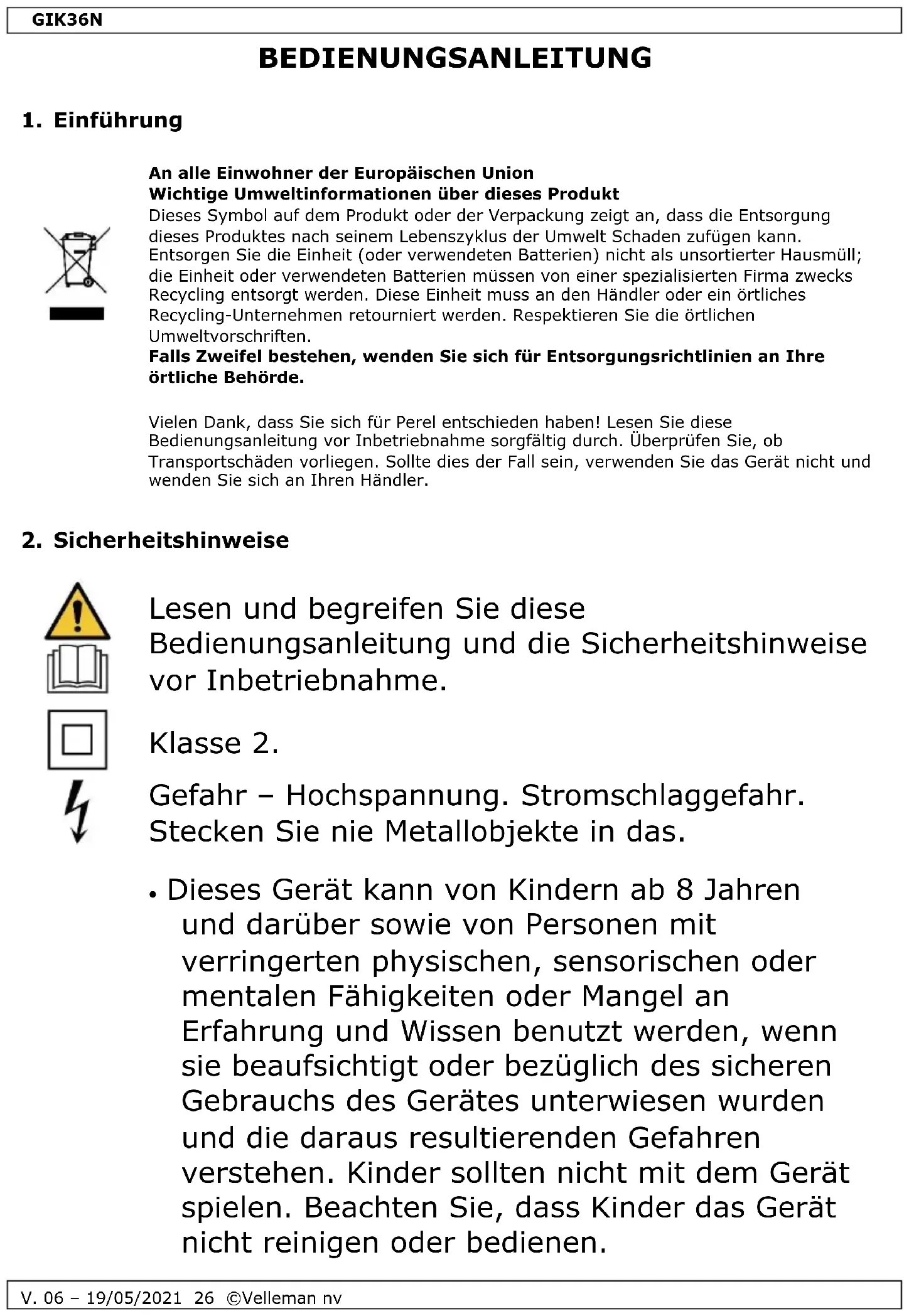 BEDIENUNGSANLEITUNG GIK36N Perel