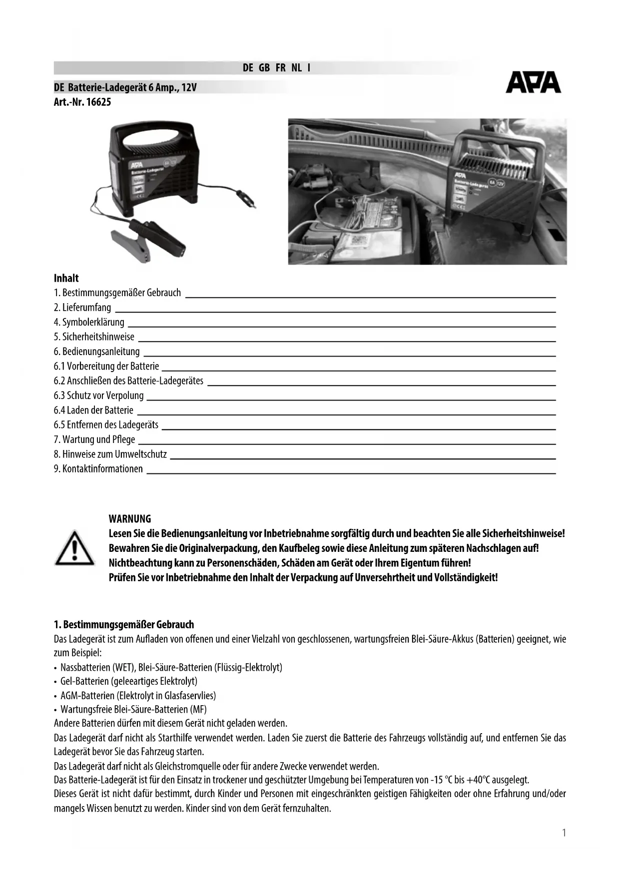 16625 - Batterieladegerät APA - Kostenlose Bedienungsanleitung