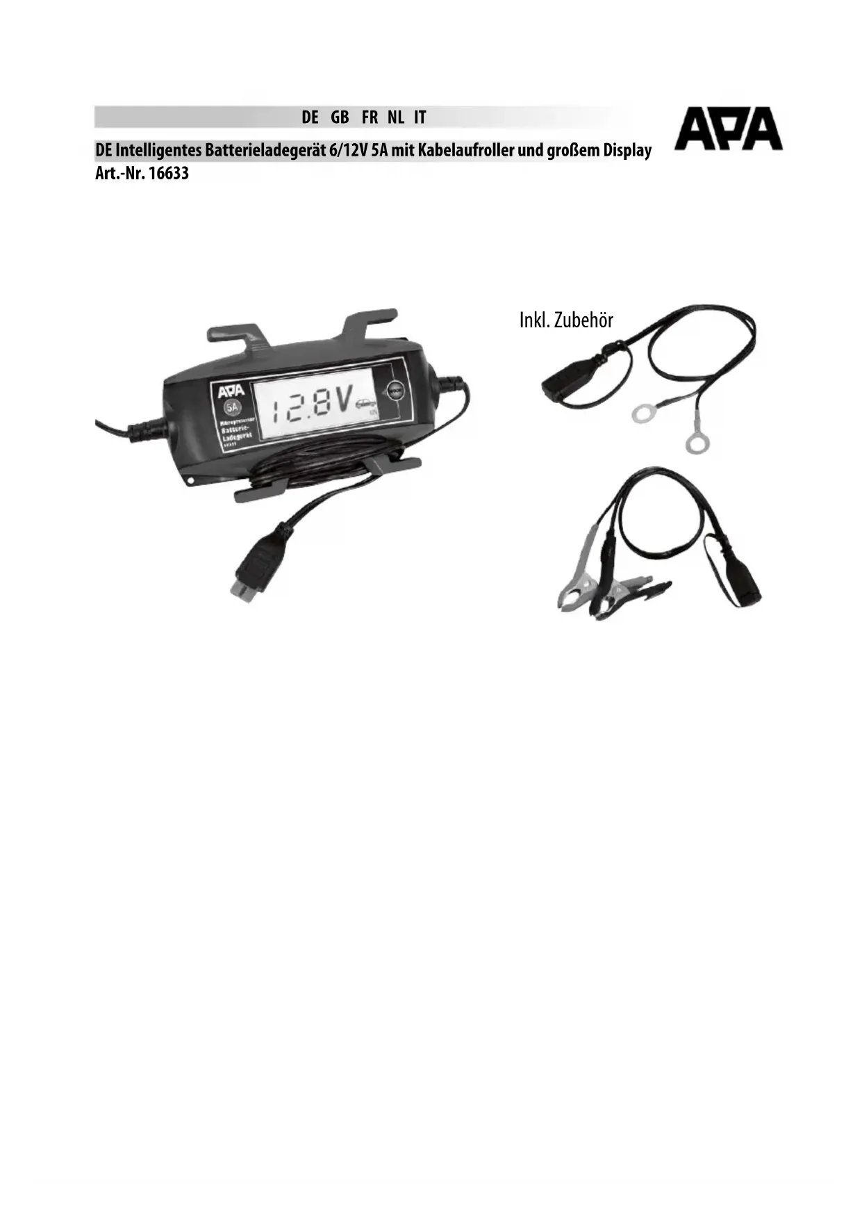 16633 - Batterieladegerät APA - Kostenlose Bedienungsanleitung