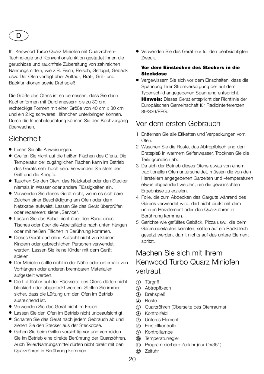 Verwendung Ihres Kenwood Turbo Quarz Ofens