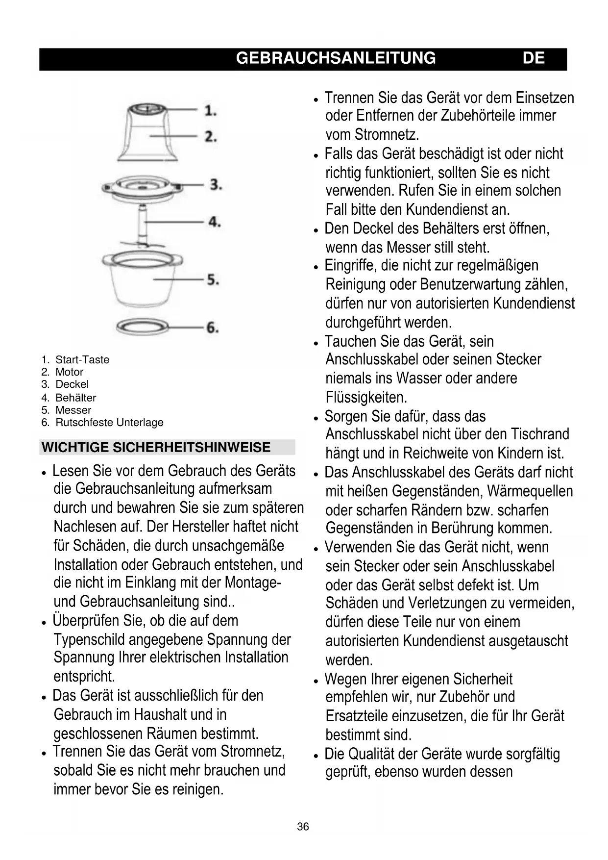 - Den Deckel des Behälters erst öffnen, wenn das Messer still steht.