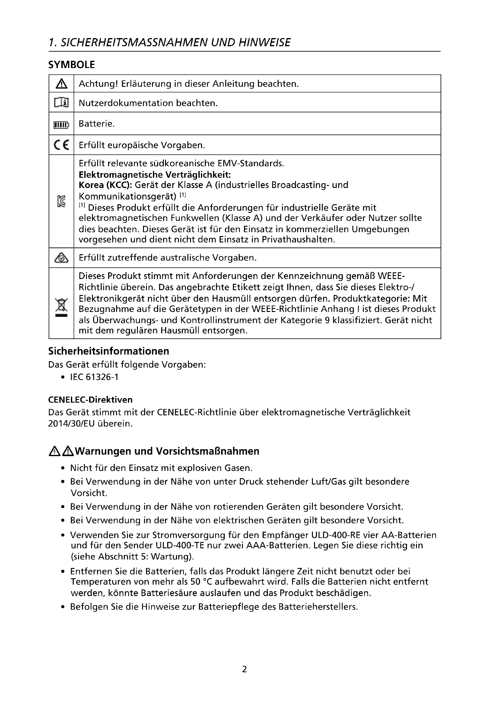 1. SICHERHEITSMASSNAHMEN UND HINWEISE
