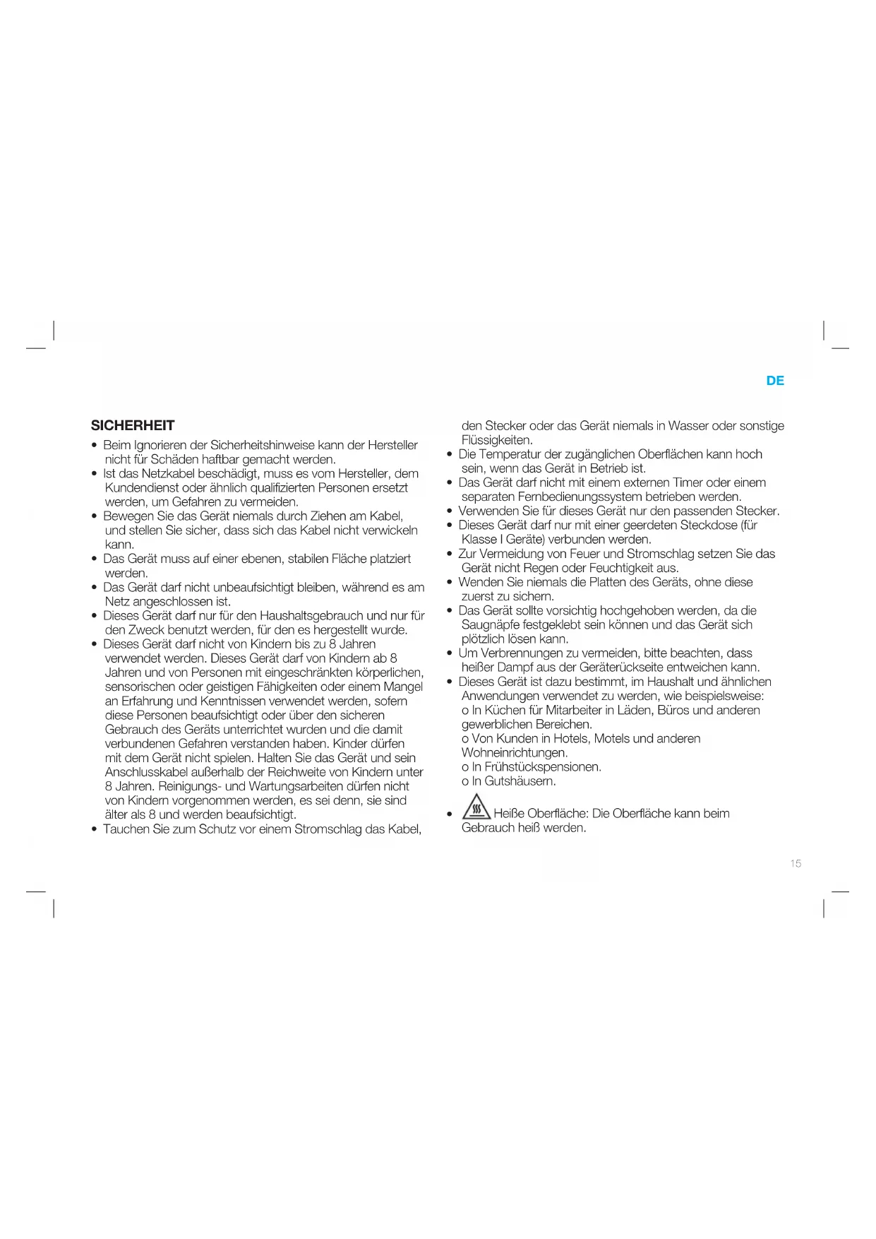 Heiße Oberfläche: Die Oberfläche kann beim Gebrauch heiß werden.1